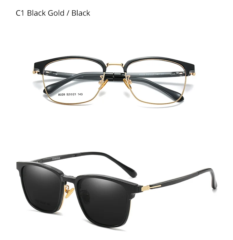 Очки 2 в 1 Ralferty, поляризационные, магнитные, мужские и женские солнечные очки, с зажимом на квадратной оправе, Z8028