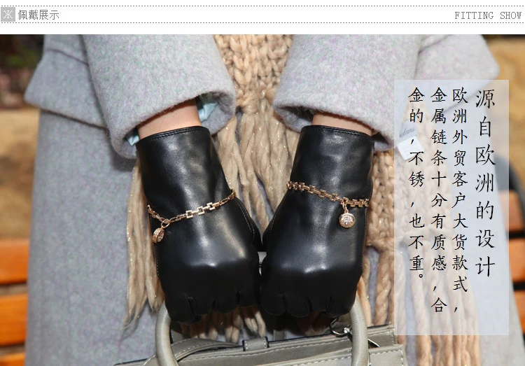 Последняя перчатки импортная дубленая натуральная кожа женские перчатки с цепочкой зимние сапоги до середины икры с опушкой из толстого бархата женские черные DQ6115