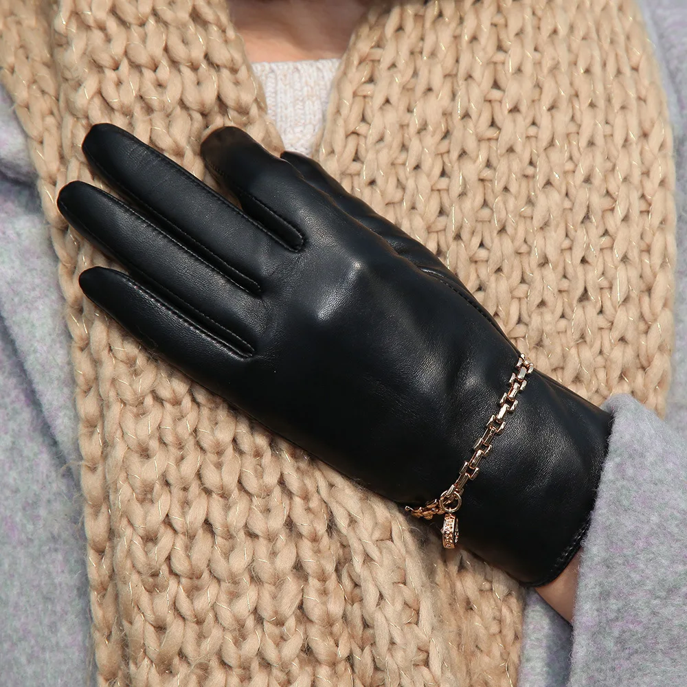 Перчатки женские из натуральной овечьей кожи, модные элегантные теп...