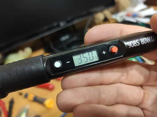 Доехало за 12 дней, купил из-за кнопочного регулятора и наличия чехла. Есть паяльник с крутилкой, так она в процессе работы вечно задевается и температура сбивается. Здесь всё норм, теперь и с собой не страшно таскать паяльник, ничего не протянет жалом :). Температура гуляет, при уставке 350 намерял и 370, но в целом вроде всё норм.