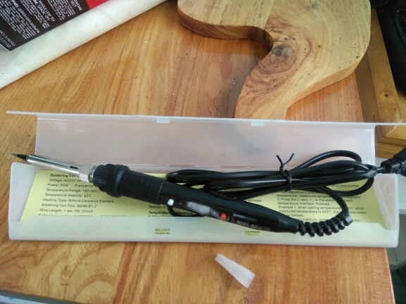 Вполне достойный паяльник, лёгкий, нагревается мгновенно, удобно держать в руке. Качество сборки и материалов где-то на четыре балла - грани у половинок корпуса неаккуратно обработаны и сам пластик какой-то потертый, но за исключением этого, всё нормально, ничего не люфтит и на части в руках не разваливается. Температуру можно выставлять от 180 до 500 С°, по умолчанию стоит 350 С°, можно регулировать вверх/вниз с шагом 1 градус - вручную, если нажимать кнопку +/-, или автоматом, если ее удерживать. Упаковано в оригинальный треугольный футляр, который может использоваться и как подставка, правда, есть подозрения, что он долго не проживет и скоро развалится в месте стыка половинок ) Инструкция на английском. Отправляли очень долго, видимо, продавец был завален заказами после 11.11. Доставка в Москву 25 дней с полным отслеживанием.