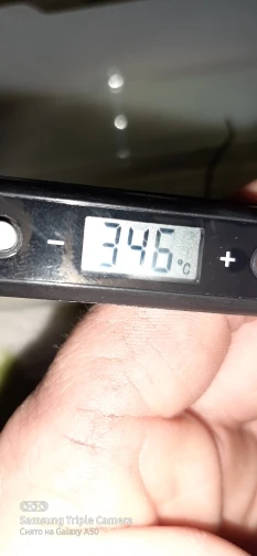судя по показаниям термометра температуру стабилизирует точно. Диаметр нагревателя 3.8мм, жало внутри 4.03, магнитится. От сети потребляет в момент нагрева около 80 ватт импульсами. качество пластика корпуса посредсвенное - облои, царапается...
