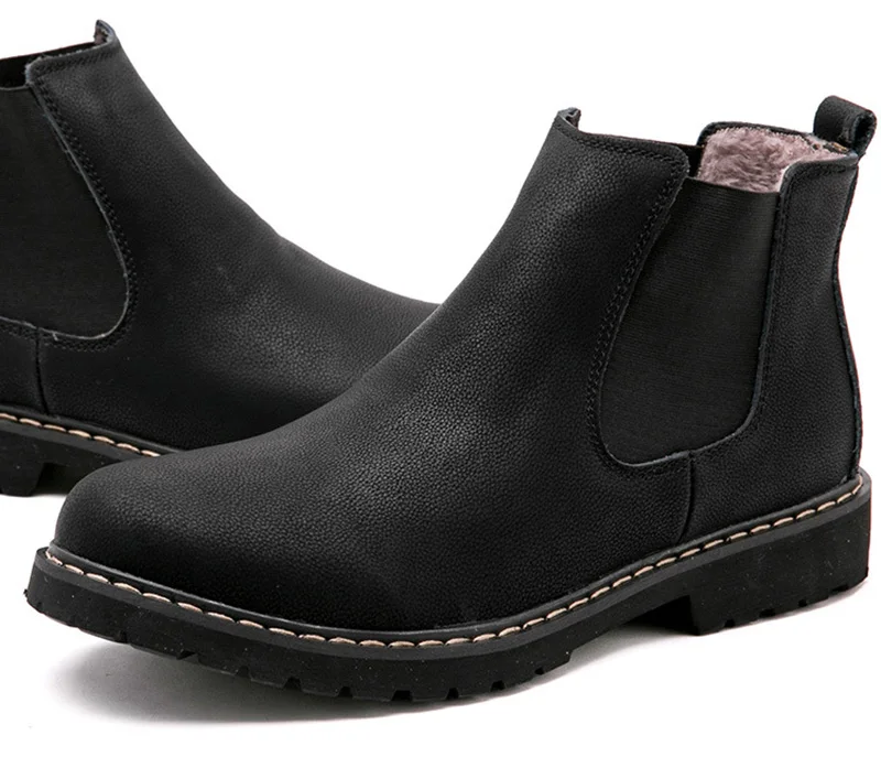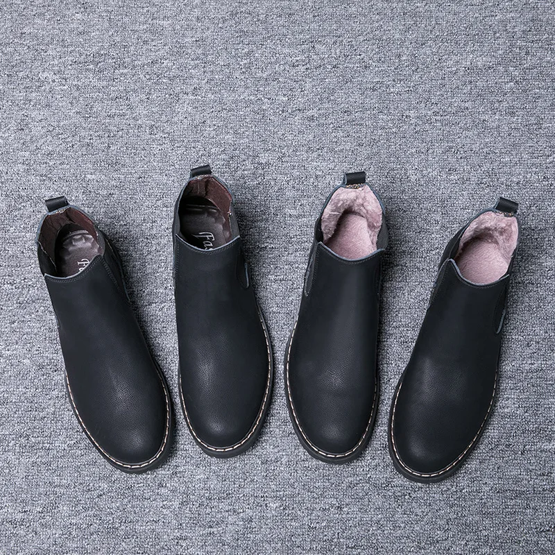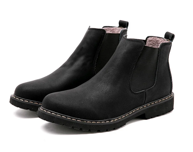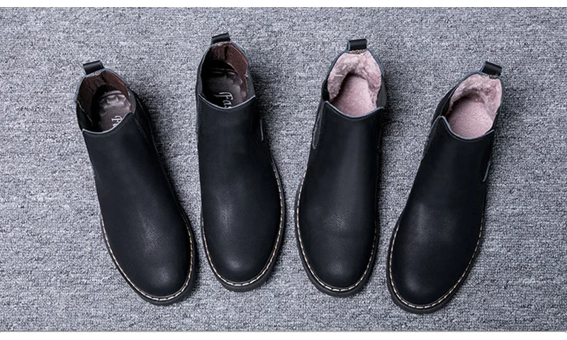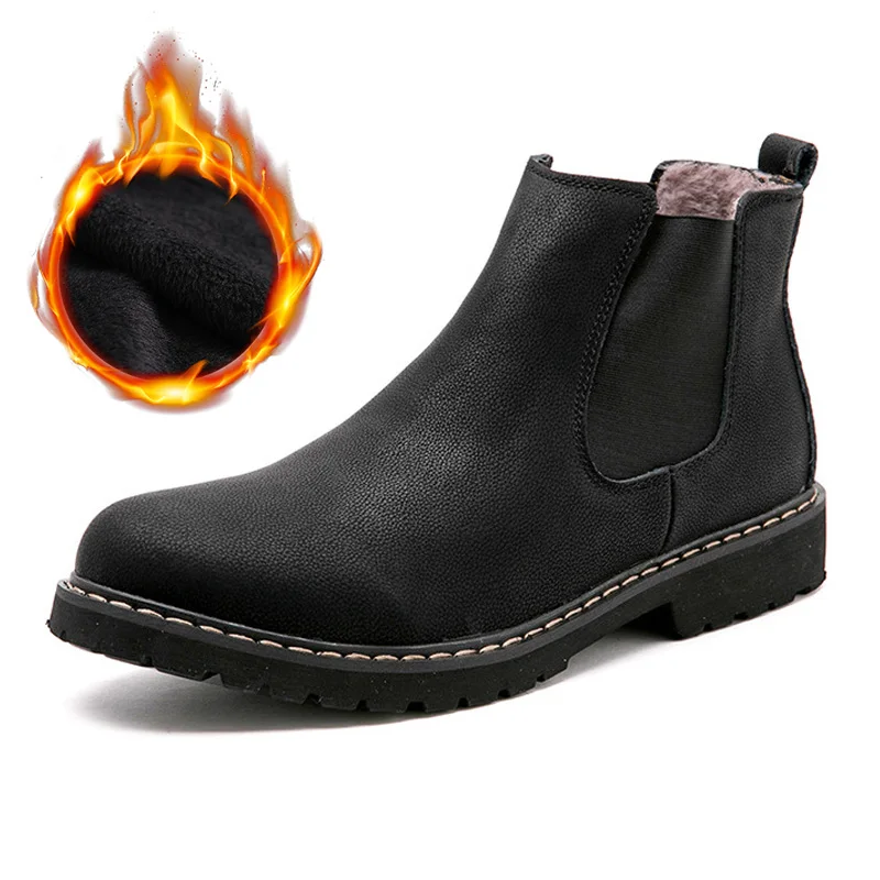Зимние теплые ботинки челси, мужские ботинки с Плюшевым Мехом, кожа...