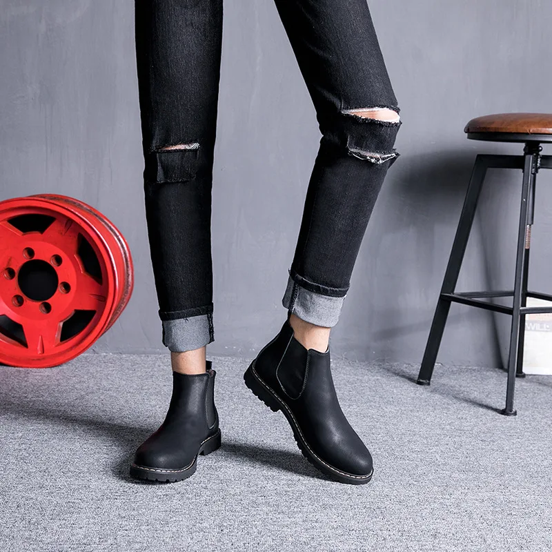 Мужские кожаные ботинки челси в британском ретро стиле, Классически...