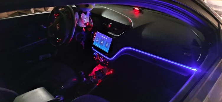 Доставка 2 недели, привез курьер. Подсветка интересная осень похожа на неон, оптоволокно хрупкое на переломах может меньше передавать свет на остаток длинны. С телефоном сопрягается без проблем. Как все установлю, дополню отзыв и добавлю фото.