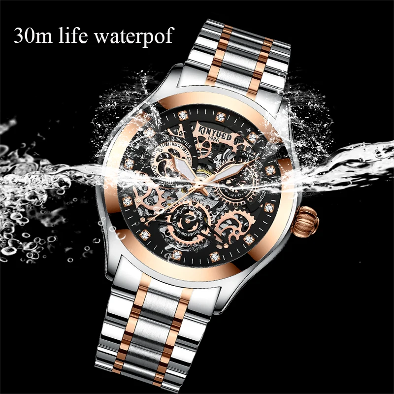 Мужские автоматические часы-скелетоны KINYUED, креативные брендовые...