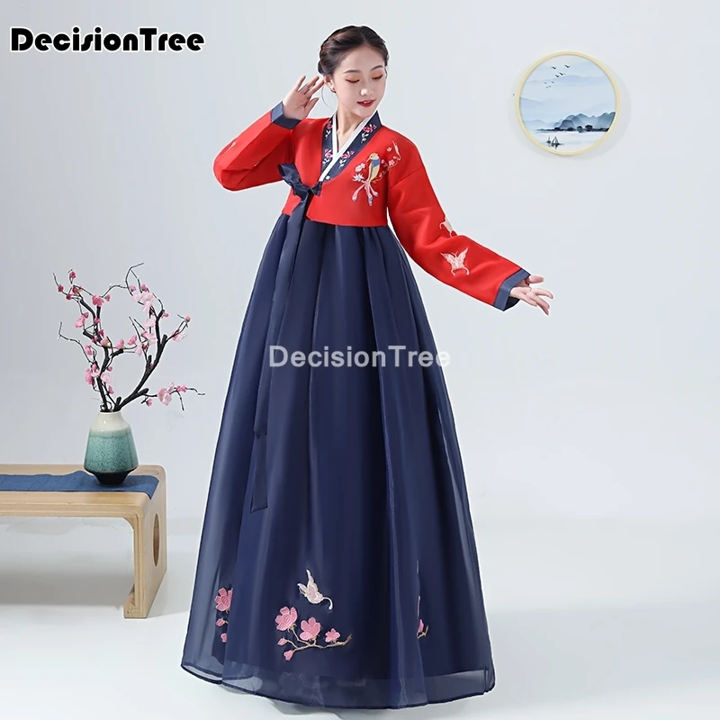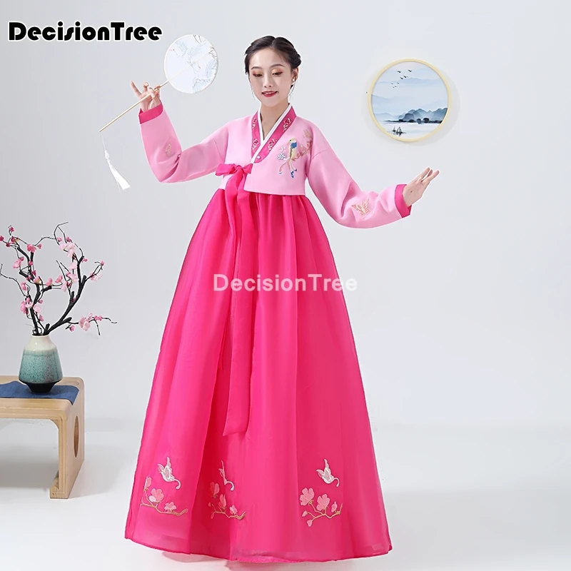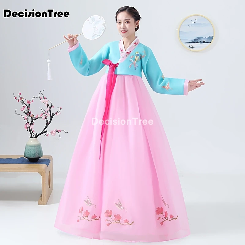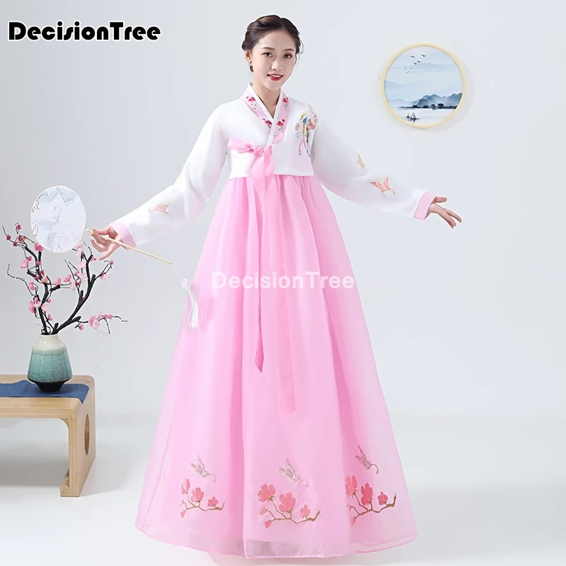 2021 корейское народное платье для женщин, одежда hanbok, платье для выступлений, традиционные азиатские корейские костюмы, женские цветочные вышивки
