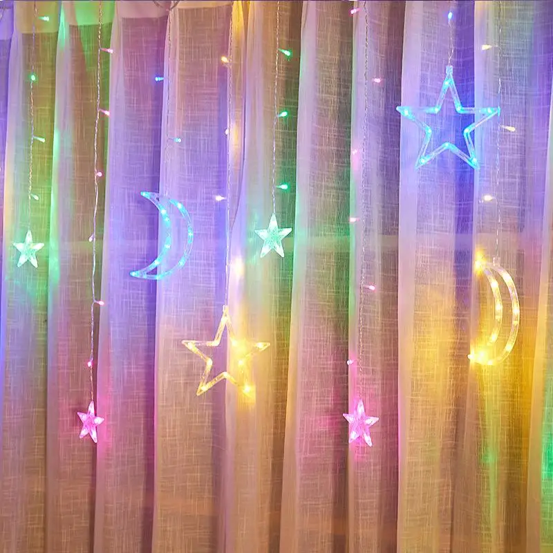 СВЕТОДИОДНАЯ Гирлянда-сосулька со звездами и луной, гирлянда-занаве...