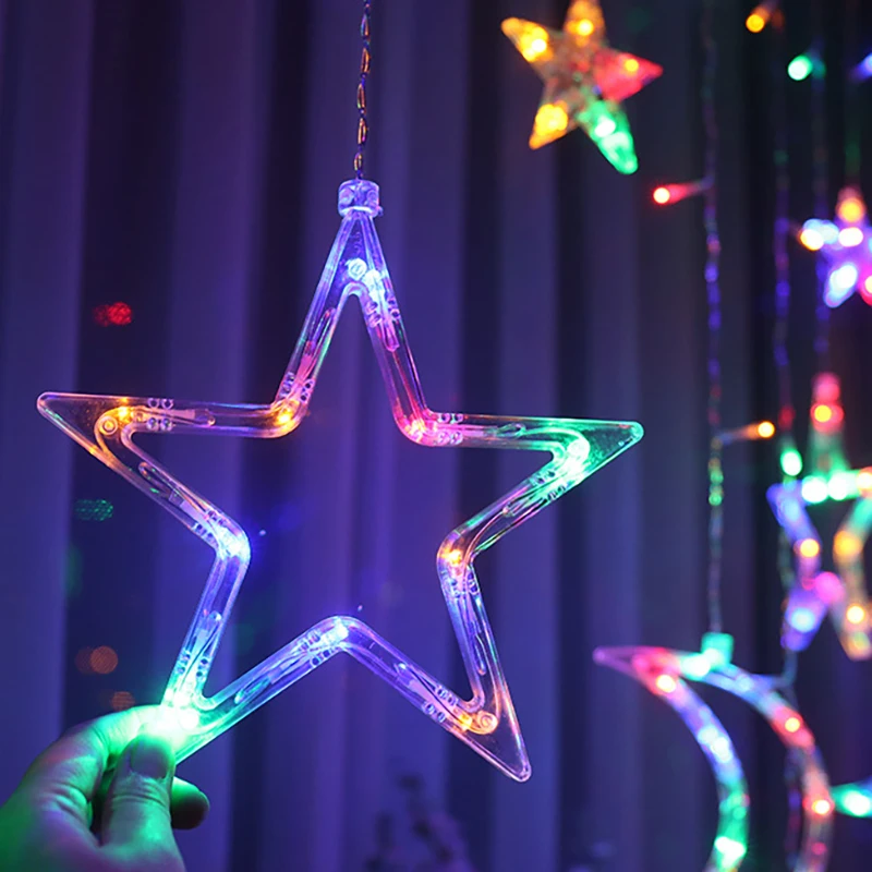 Рождественская светодиодная уличная гирлянда, Лунная звезда, лампа,...