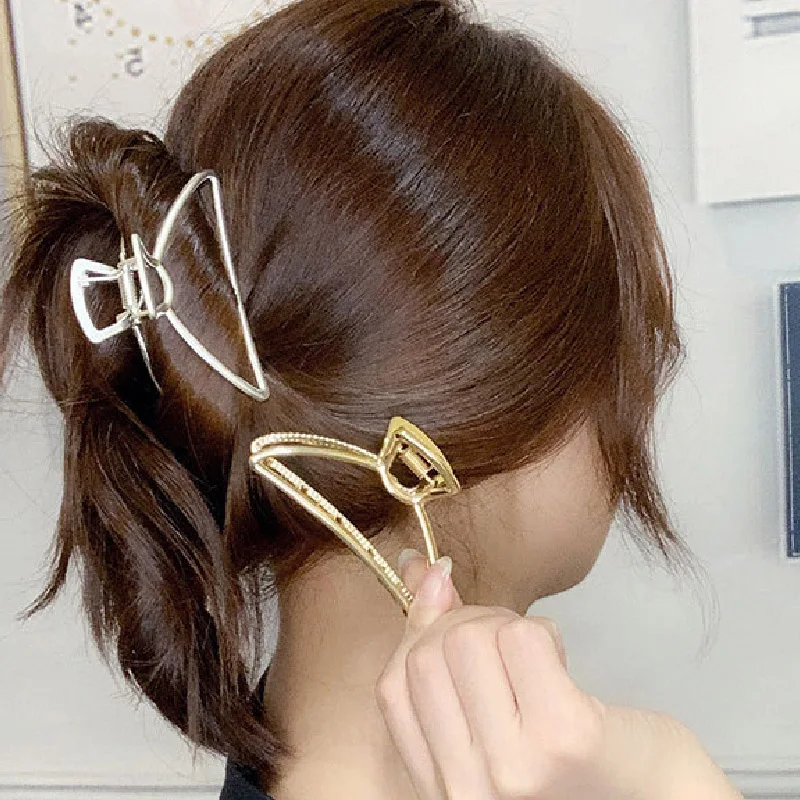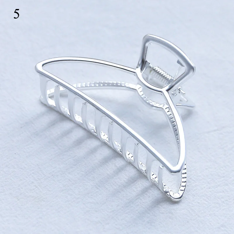 Заколка-краб для волос, металлическая, однотонная, большого размера