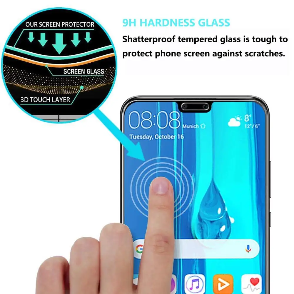 Защитное стекло, закаленное стекло 9H для Huawei Y9, Y7, Y6, 2019, ...