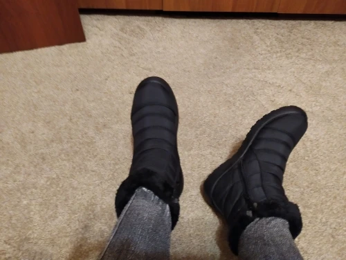 Заказывала вторые( в подарок)сестре Она довольна! я тоже.Удобные, легкие, теплые Ноги не потеют даже если тело.Носила в слякоть - Не промокают. Хожу при температуре от-5 до -17 .Зима только началась. Пока холоднее не было. Не скользкие.