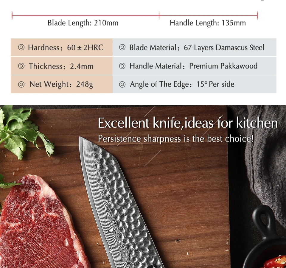 Нож XINZUO 8,5 дюйма Gyuto, кухонный нож мясника, Дамасские столовы...