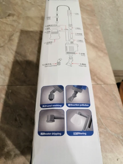 В целом товар хороший,насос мощный.Не работает на маленькой глубине,когда сам насос не полностью погружен в воду.Попробовала в работе все комплектующие.Треугольная насадка стекла скребёт не очень,но для фильтрации воды подходит хорошо.Насадка с клапаном быстро закрывается грунтом,но все равно фильтрует,мешочек для взвеси не пропускает даже самую маленькую взвесь,шланг сливает отлично.Липучки не держат такой большой и тяжёлый насос на стекле,а сползает вниз.Спасибо продавцу за товар и очень быструю доставку за неделю.