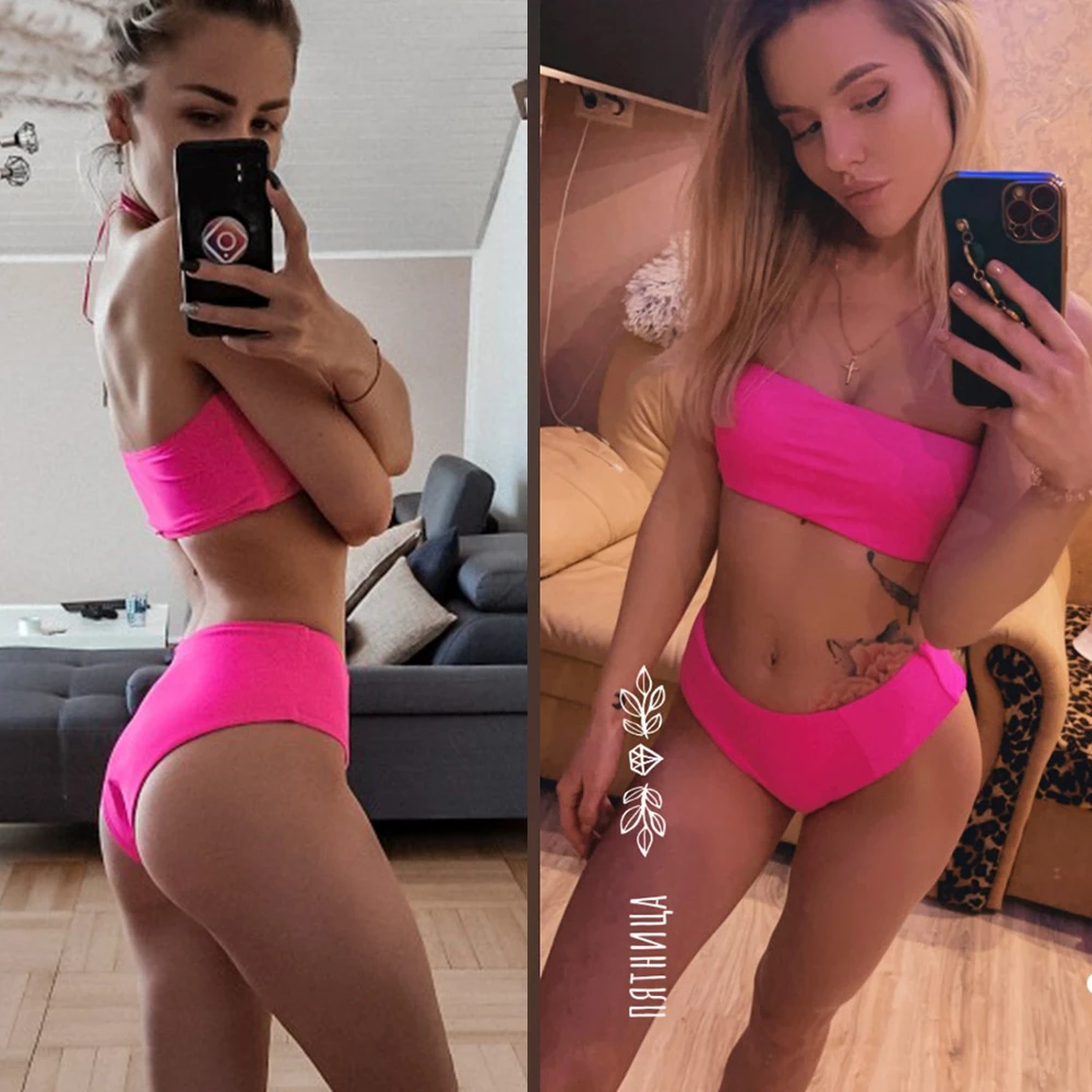 RUUHEE Высокая талия неоновое бикини 2022 женские бикини Бандо купальник Mayo пуш-ап, купальник, застежкой-молнией на спине, сексуальный купальник из двух частей для Для женщин