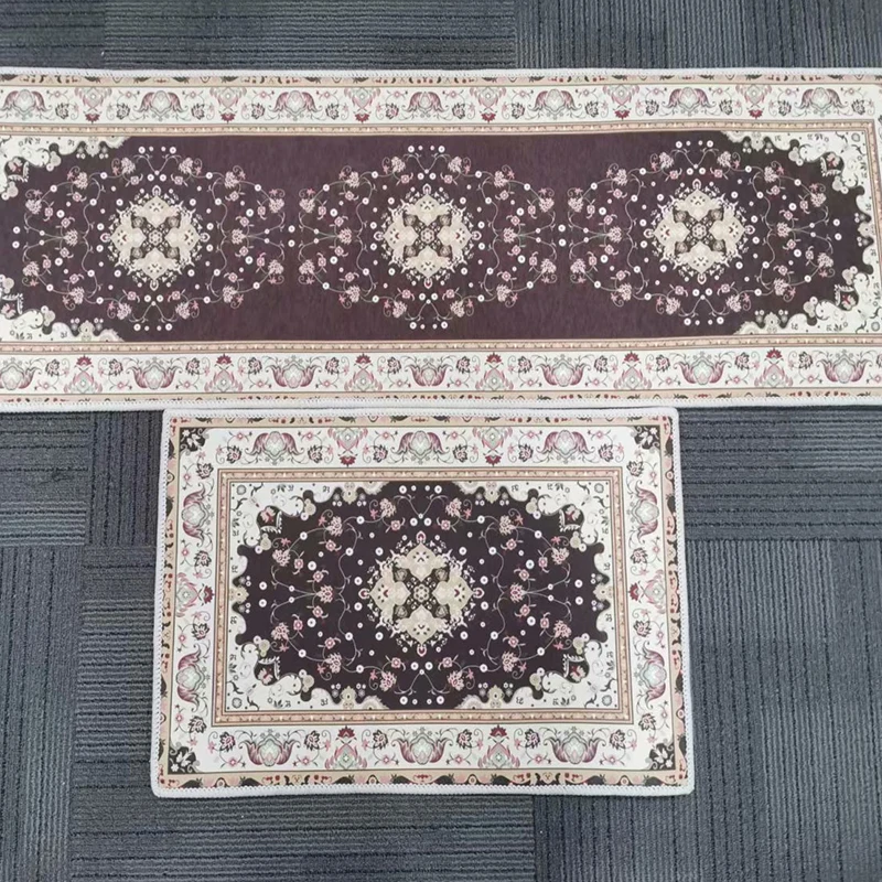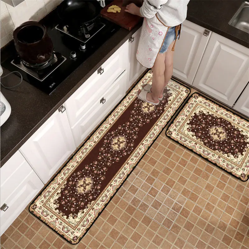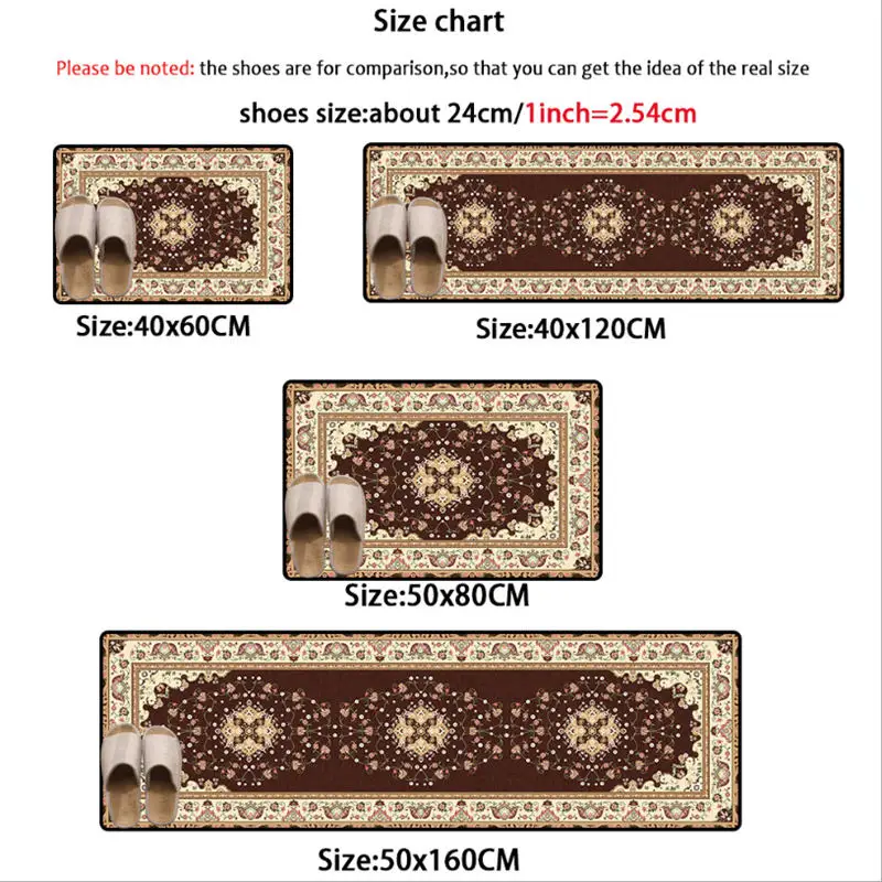 Ковер кухонный в европейском стиле с красным и коричневым цветочным узором, 40 х60 см