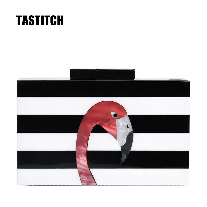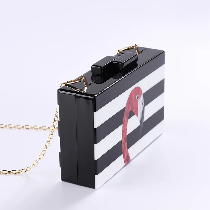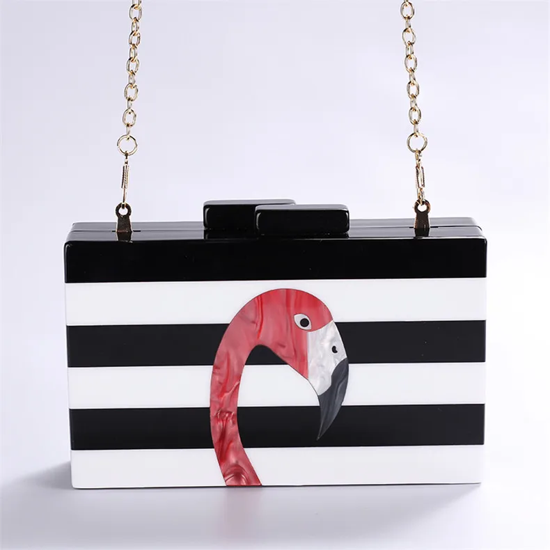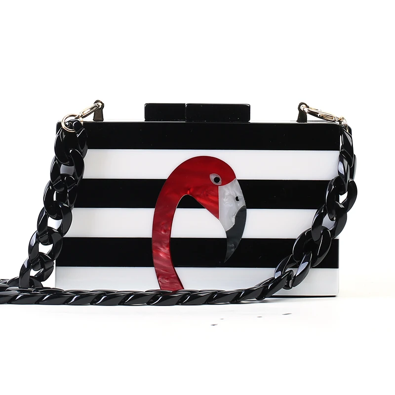 Женская сумка-мессенджер из акрила, Классическая черно-белая сумка в полоску, Повседневная сумка через плечо, сумка "фламинго"