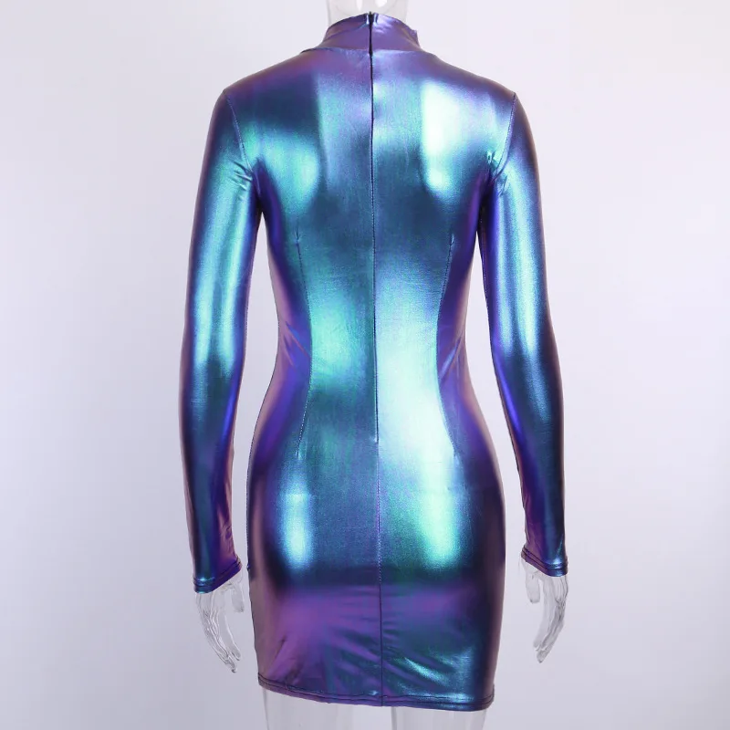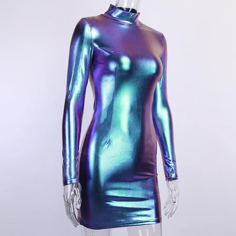 Женское мини-платье с лазерной голограммой, блестящее платье в набедренной упаковке для музыкального фестиваля, клуба, диджея, вечеринки, шоу, танцев, женский сексуальный костюм для дискотеки