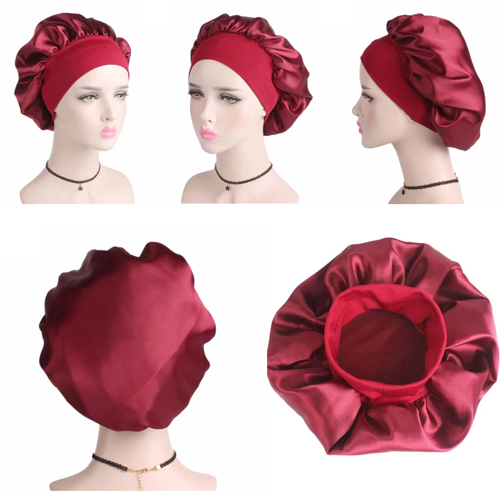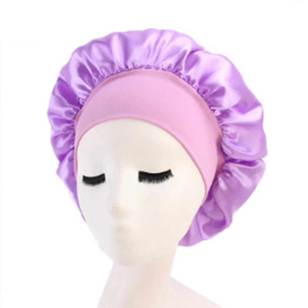 Женская сатиновая Кепка для сна, однотонная, широкополая, для сна, для женщин и мужчин, колпак для сна