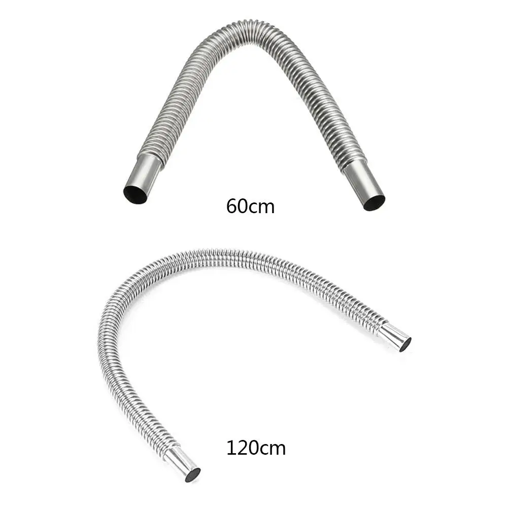 Технические характеристики изделия: 1. Цвет: серебристый 2. Материал: нержавеющая сталь 3. Диаметр: около 2,5 см/0,98 дюйма 4. Длина: около 60 см/23.62in, 120 см/47.24in 5. Использование: для парковки воздуха дизельного обогревателя