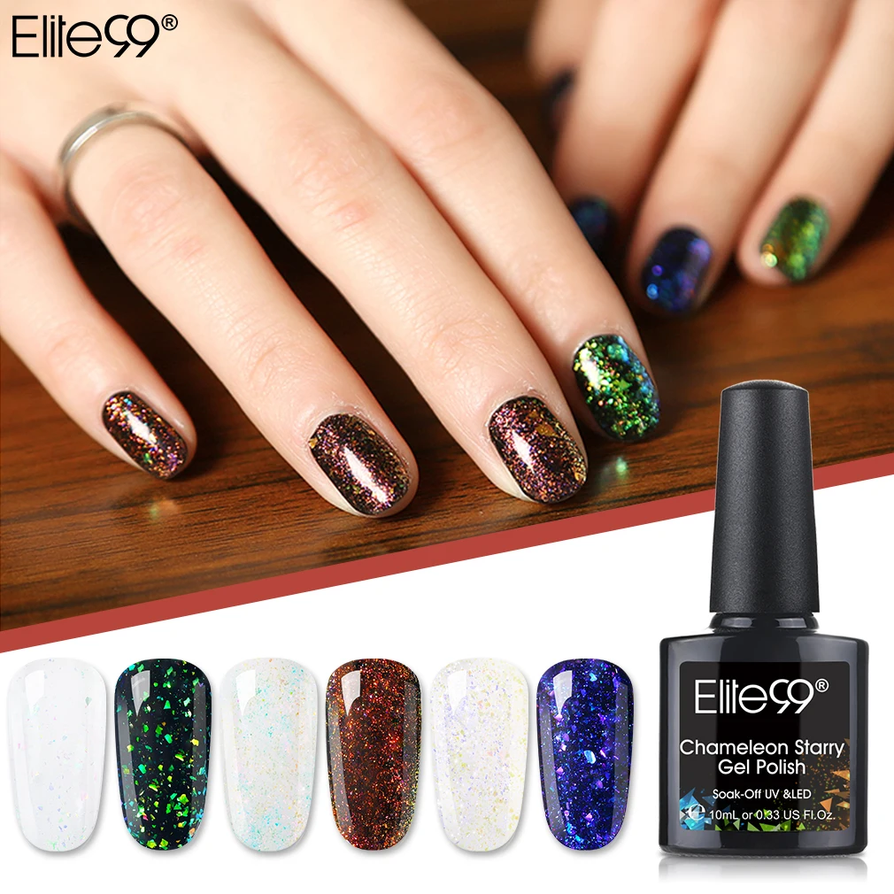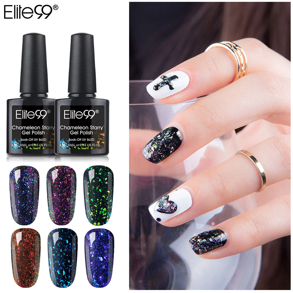 Elite99 10 мл Звездное Блестящий Гель-лак для ногтей, которые могут изменить свой цвет! полупостоянная гель-лака для ногтей черное основание необходимо био-Гели Soak Off УФ гель-Лаки