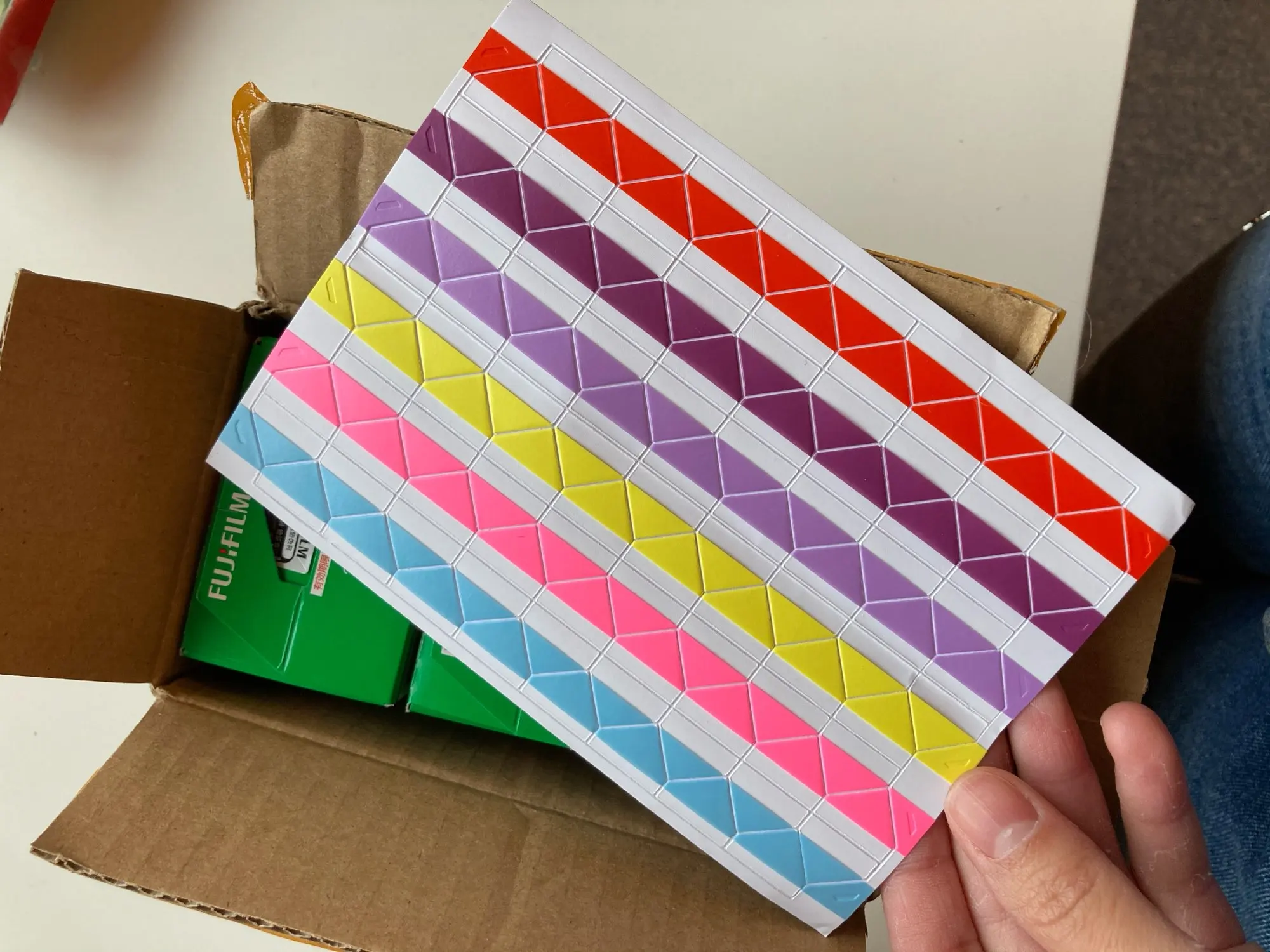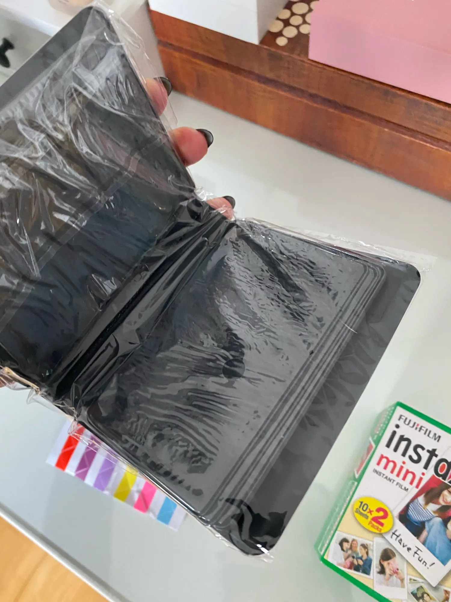 Продавец долго не отправлял товар. Очень хорошо упакованы. В подарок наклейки для блокнота, в которые можно вставлять полароиды.