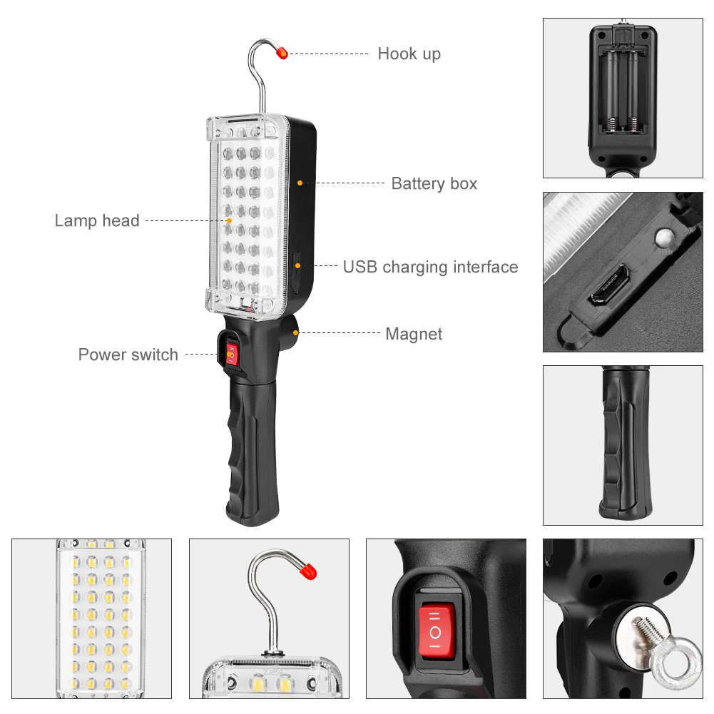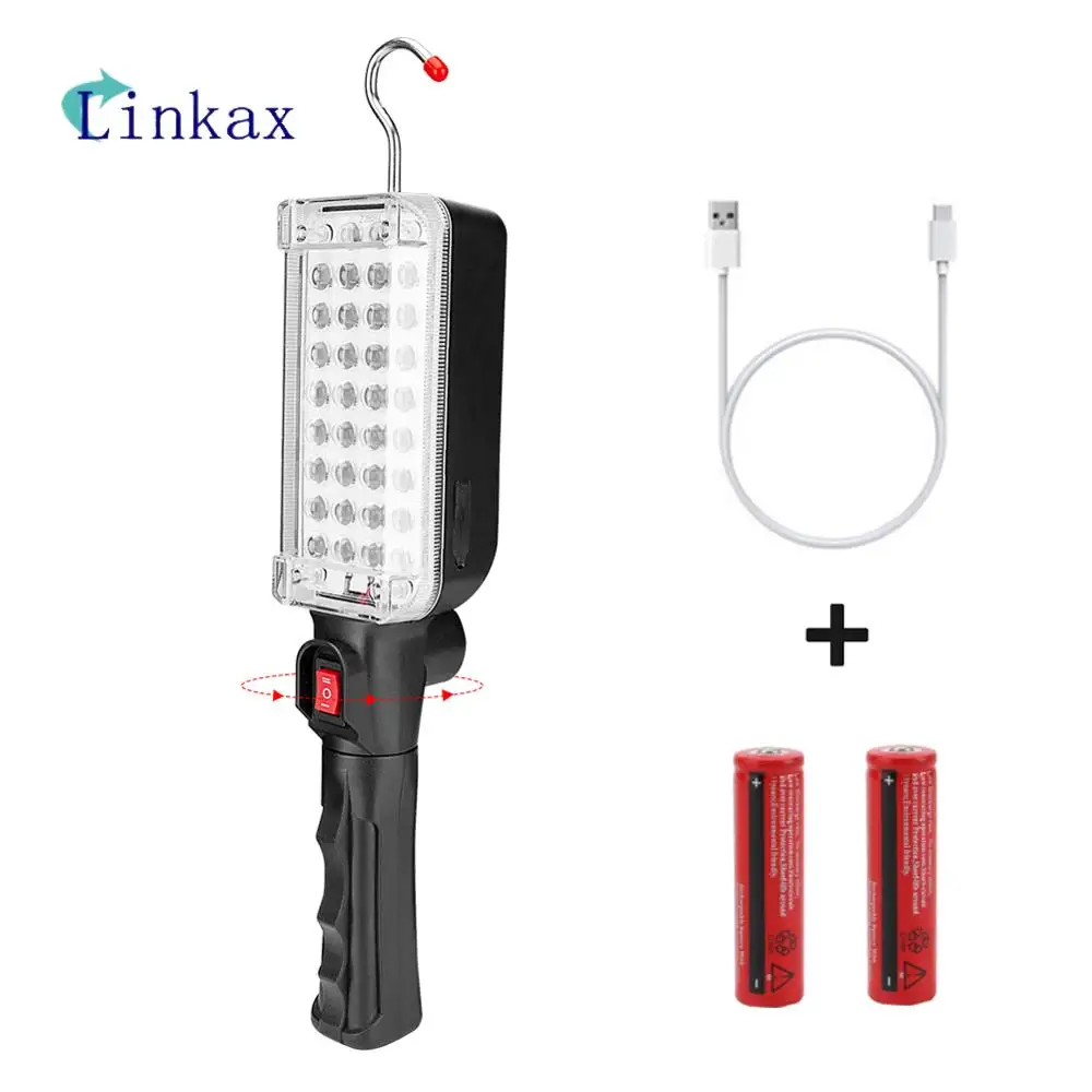 34 SMD светодиодный Рабочий фонарь с вращением на 360 , ремонтная Рабочая лампа, фонарь с питанием 18650, магнитный крючок, палатка, кемпинговый фонарь