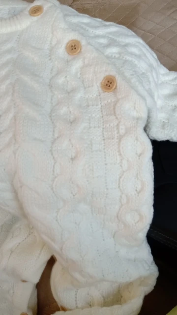 Симпатичный комбинезон выглядит тепло. Цвет не указан. Мне нужен белый цвет, к сожалению, цвет экрю бежевый. Большой размер 3 месяца соответствует 6 месяцу. Я разочарован, потому что я хотел его для назначения наряд для рождения, но слишком большой и не желаемый цвет. В противном случае ребенок не пожалеет, что его наденет.