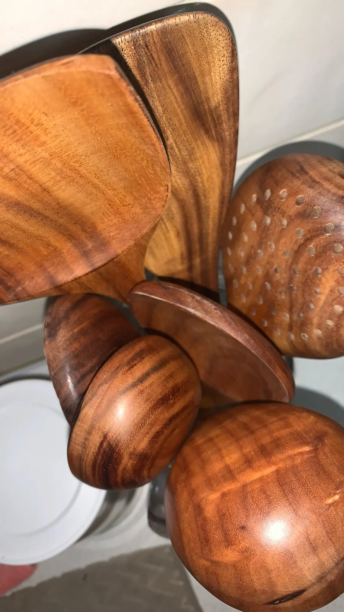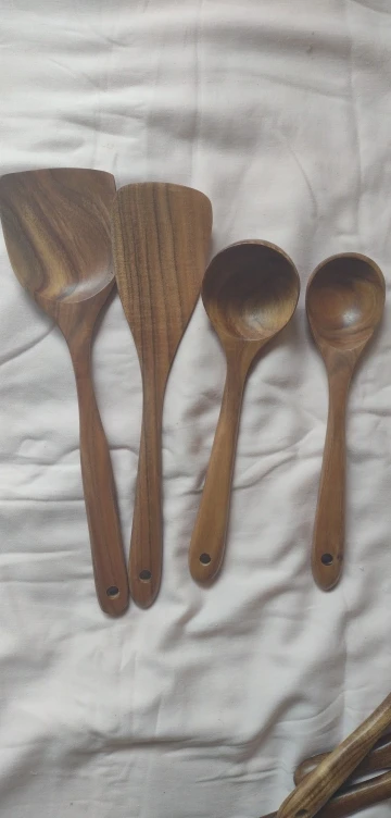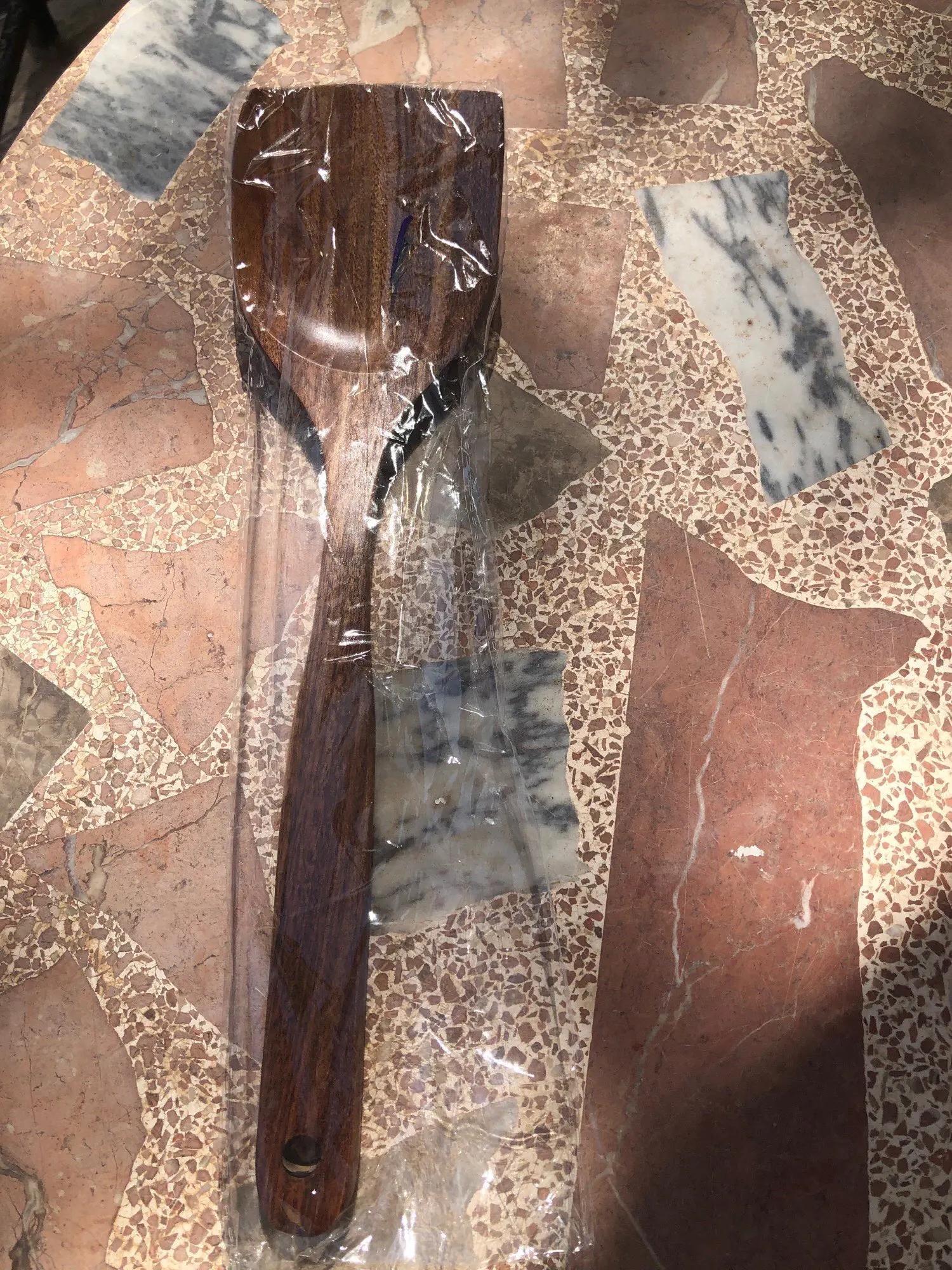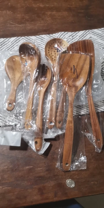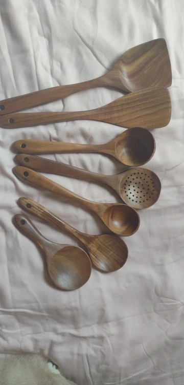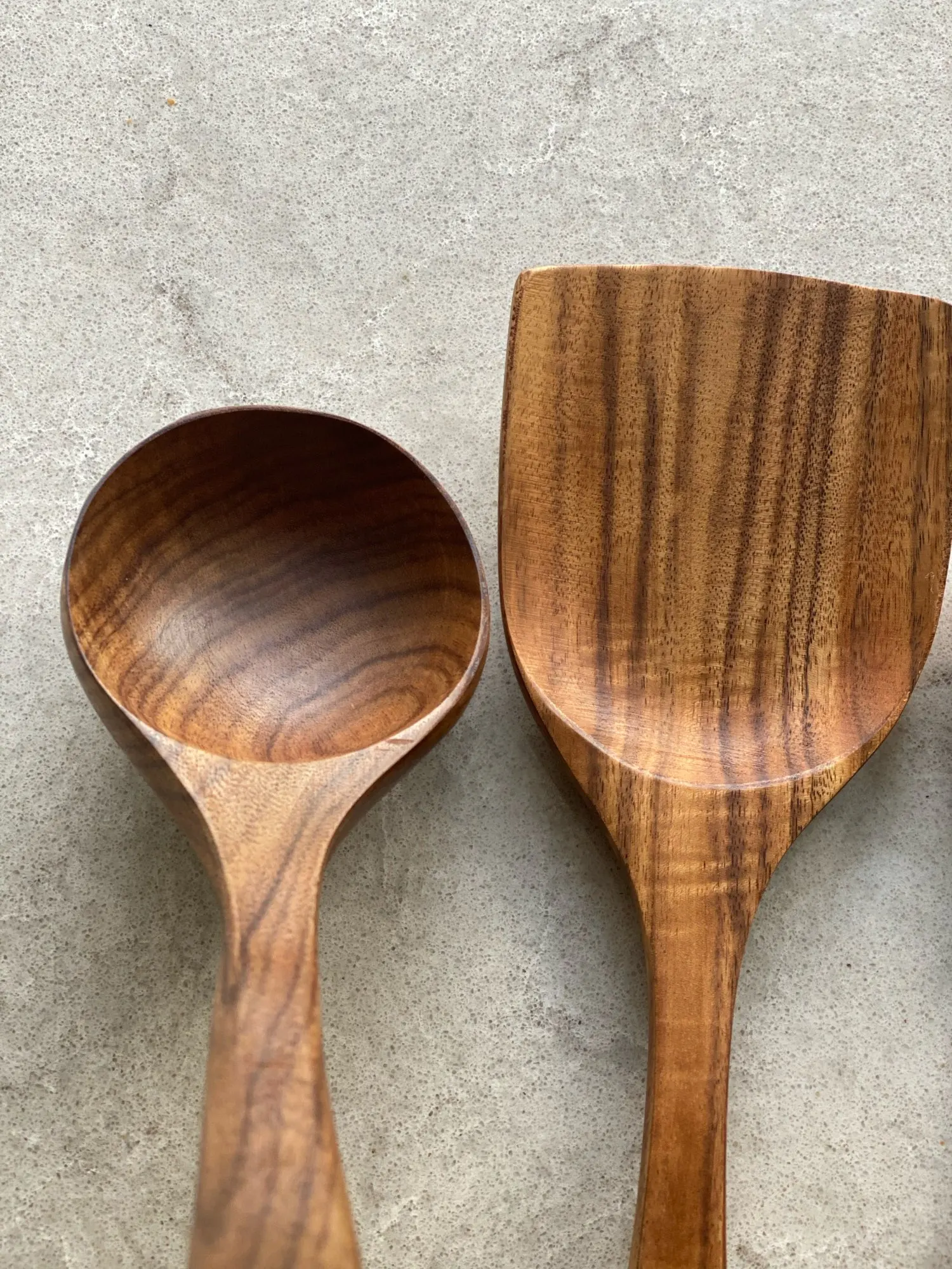 отличные массивные лопатки. плотные. широкие. одна плохо зашлифована, но не критично. зато видно что натуральное дерево. немного большего размера ожидала половник и шумовку. они маловаты, более нежные чем лопатки.