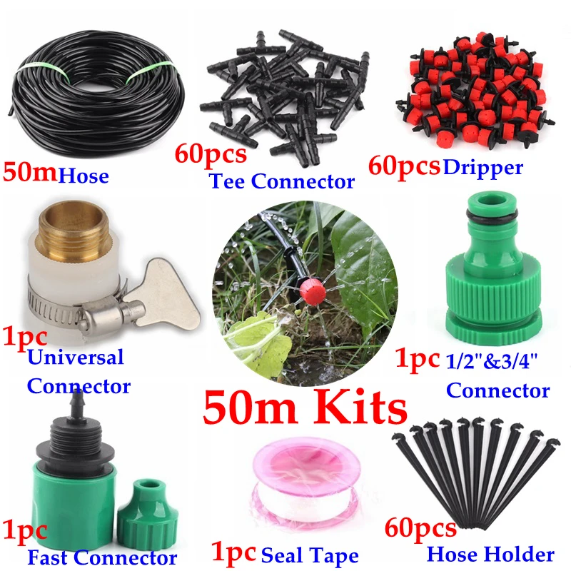 Наборы для полива 5 м 50 м, 8 отверстий, регулируемый излучатель капель с 47 мм шлангом, система полива теплиц для сада