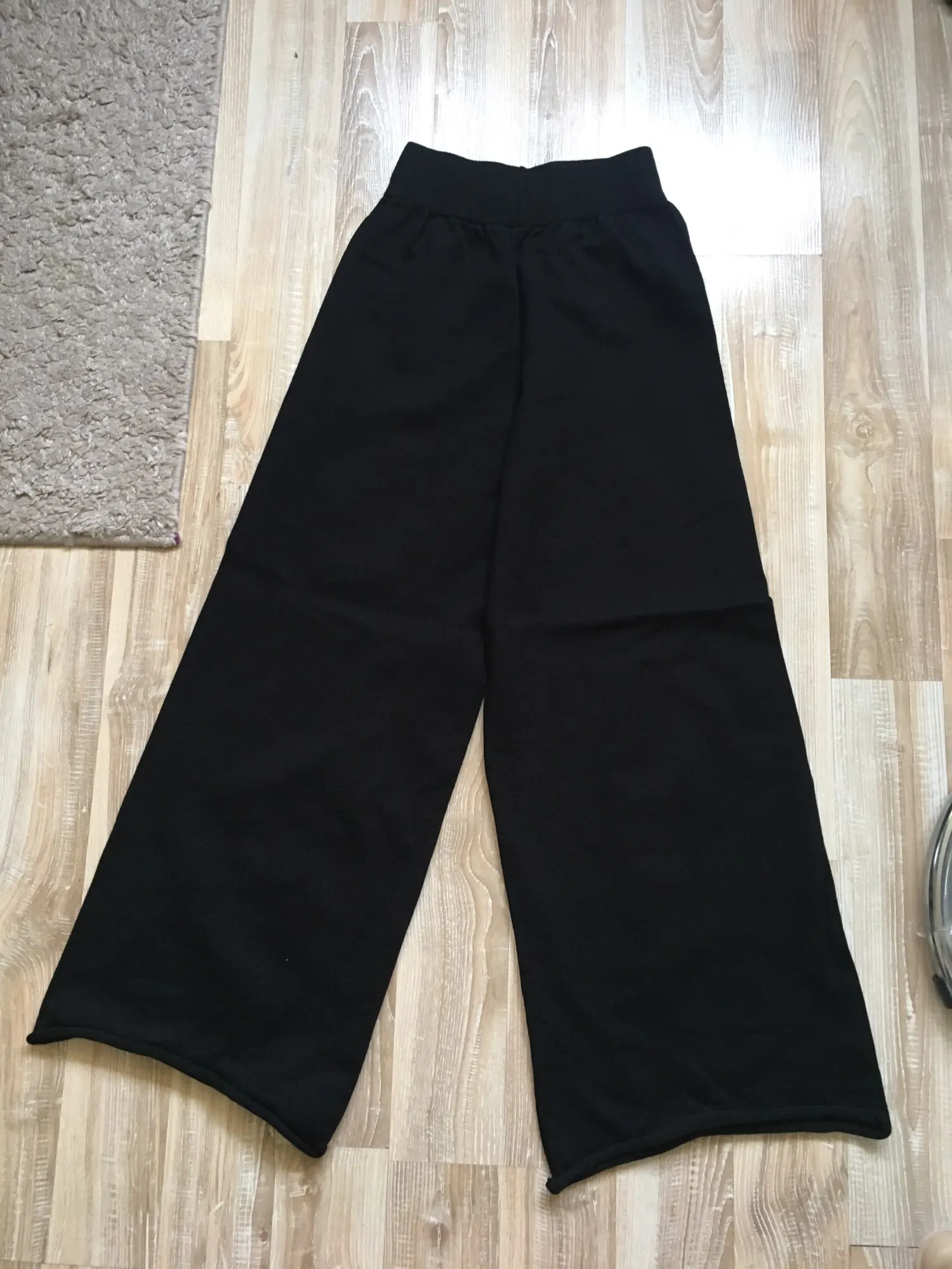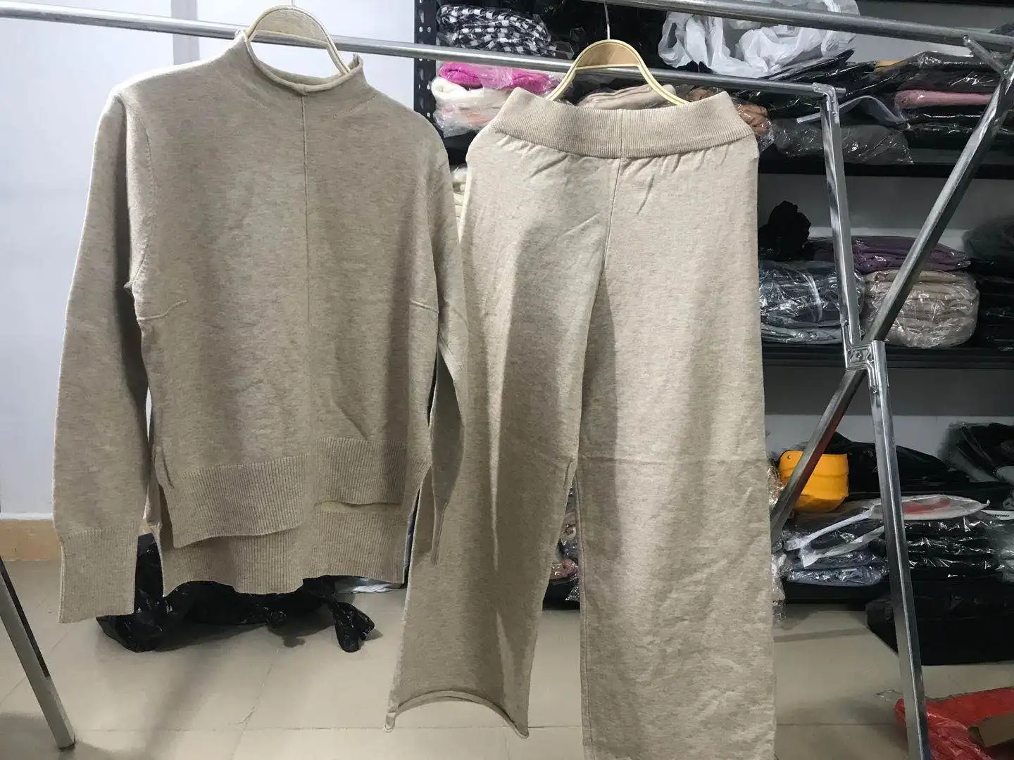 Женский трикотажный костюм из двух предметов, кашемировый свитер с широкими штанинами, костюмы в западном стиле