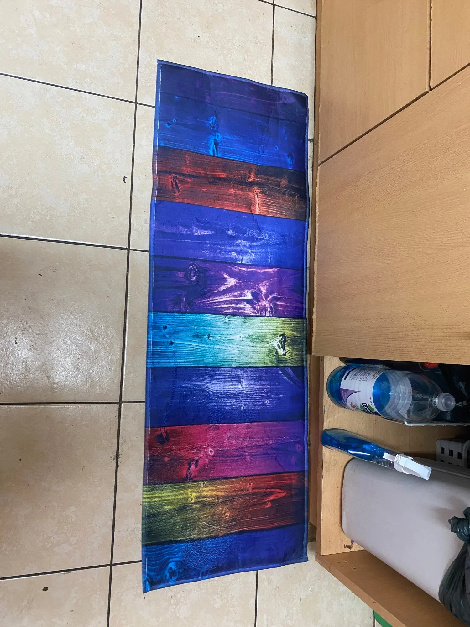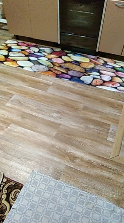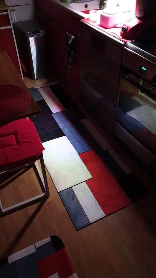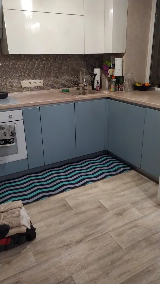 класный коврик на кухню. заказали самый большой, очень круто смотрится. надеюсь после стирки не убьется.