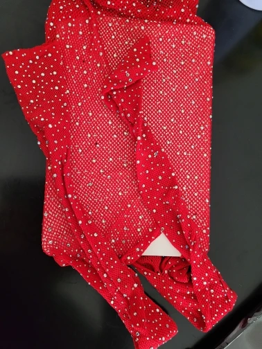 Боди женское, прозрачное, с бисером, с открытыми плечами и бриллиантами, с длинным рукавом, R80877