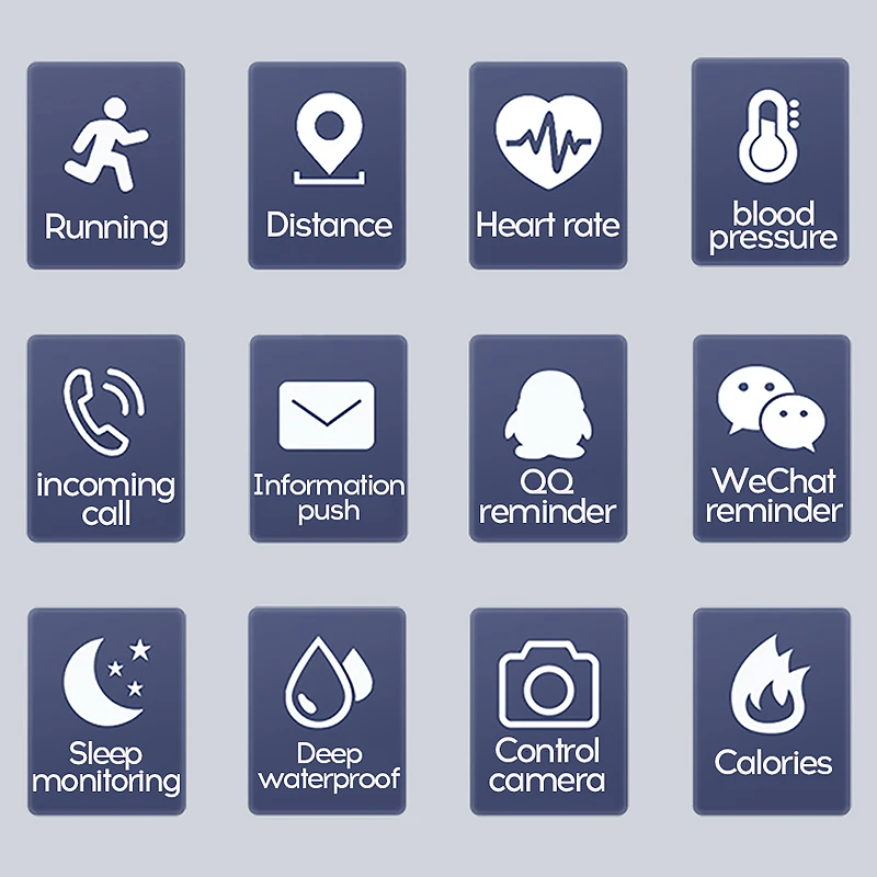 100% новый ярлык и высокое качество;Режим работы: сенсорное управлениеВключение питания: длинная клавиша функции нажатия -Напряжение зарядки 5 в ток 1A-2.1A время зарядки 2 часа--Время работы в режиме ожидания 2-3 дня-Отслеживание активности в течение всего дня: шаги, сожженные калории, пробег и частота сердечных сокращений.-Умные напоминания: напоминания о звонках, push-сообщения, напоминание о малоподвижности.-Больше функций: Поиск телефона, Удаленная съемка камеры, Остановка часов.-Непрерывный монитор сердечного ритма: Непрерывное автоматическое отслеживание сердечного ритма прямо на запястье в секунду.-0,96 "TFT цветной сенсорный экран: HD экран, легко читать все фитнес-данные.-Настраиваемые Циферблаты часов-Bluetooth 4,0, совместим с системой Android 4,4 и выше, ios 8,0 и выше.-Язык поддержки смарт-браслета: английский-Язык поддержки приложения: русский, немецкий, итальянский, японский, французский, упрощенный китайский, традиционный китайский, португальский, испанский, арабский, корейский, английский Посылка включает в себя:1 * умный Браслет1 * Руководство пользователя