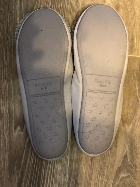 Обратите внимание, на русский 37 (узная ступня) тапочки размера 38/39 оказались сильно велики, падают с ноги. Отдала маме, у нее 38 размер и широкая ступня, ей подошли. Цвет соответствует описанию. Подошва с наружной стороны тапочек тканевая (ткань натянута поверх чего-то твердого).