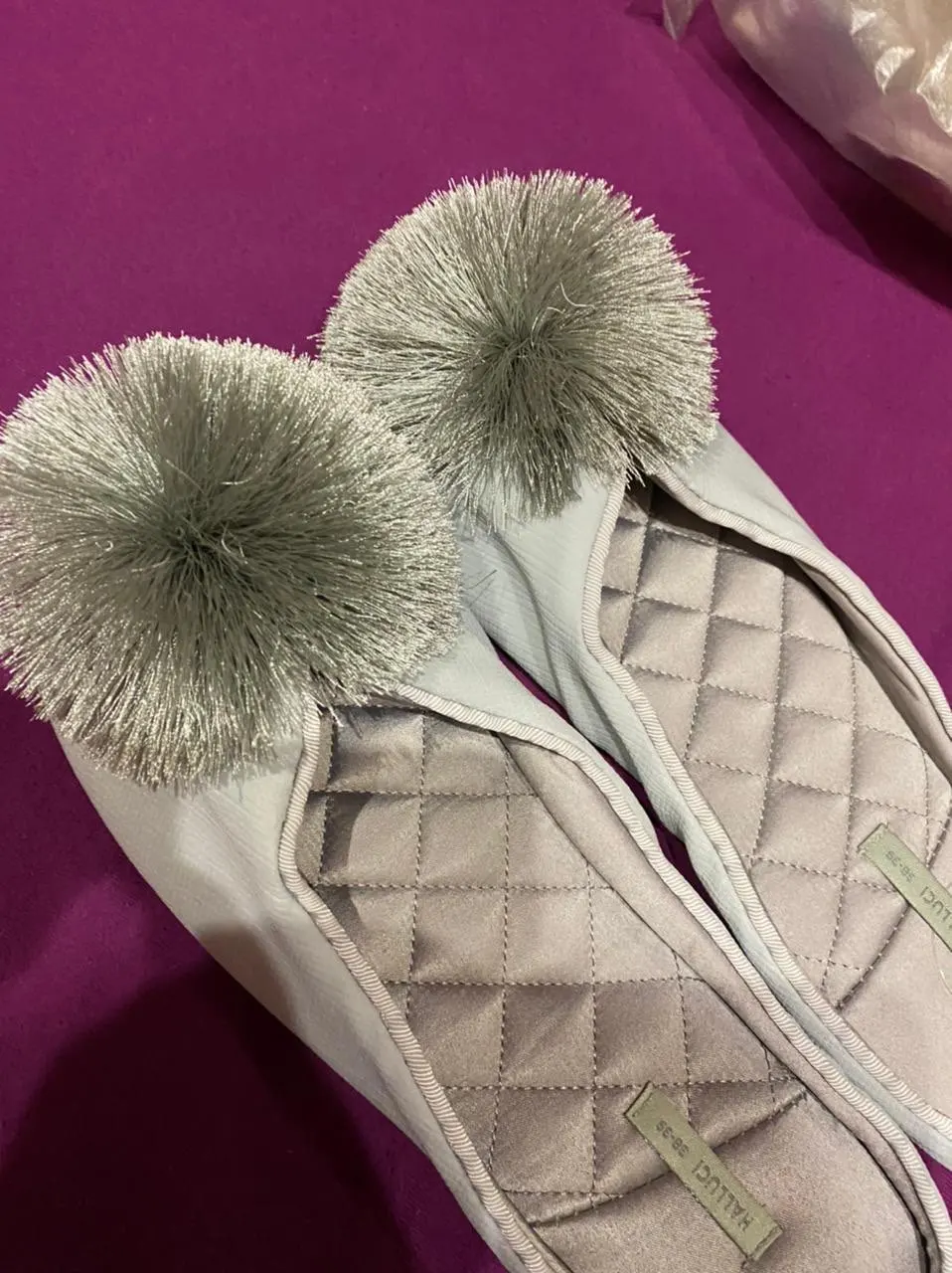 тапочки очень хорошего качества. нитки нигде не торчат. цвет очень приятный. на 38 брала 38-39. подошва нескользяшая.