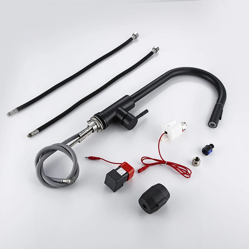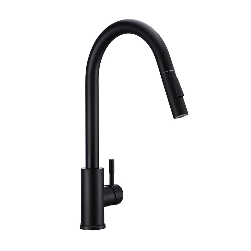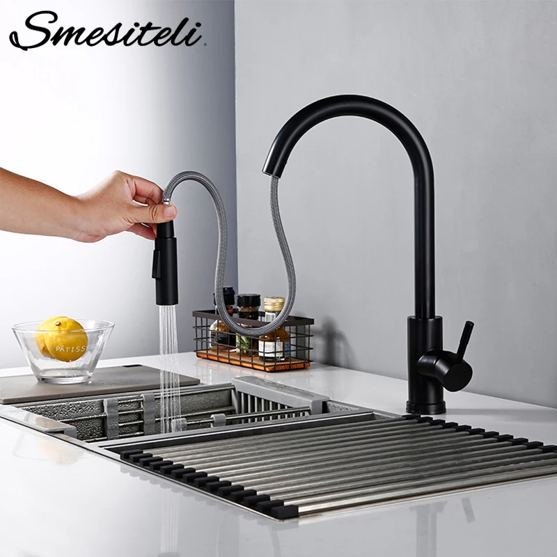 Smesiteli матовый черный на одно отверстие с одной ручкой индукционный кухонный кран из латуни для горячей и холодной воды выдвижной кран для раковины