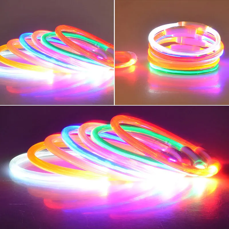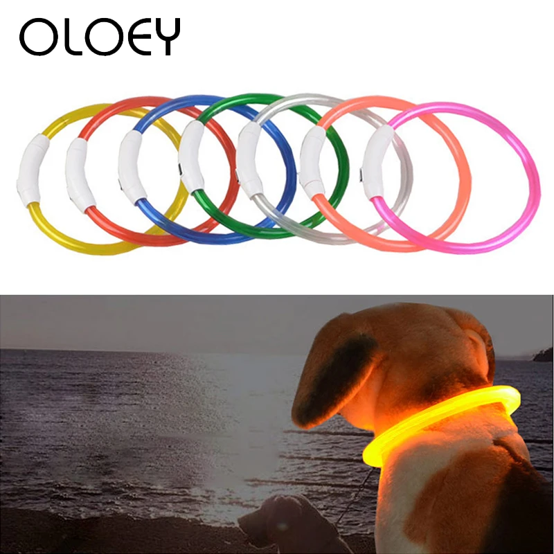 USB-ошейник для собак, перезаряжаемая Светодиодная трубка, мигающий ночной светящийся ошейник против потери для собак, щенков, ошейник с батареей, товары для домашних животных