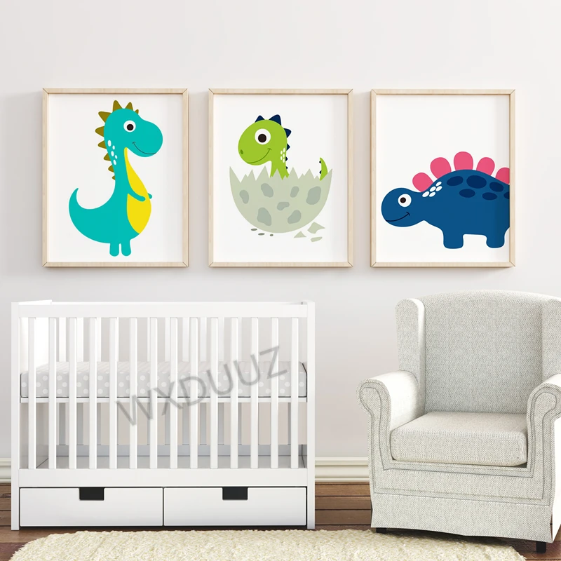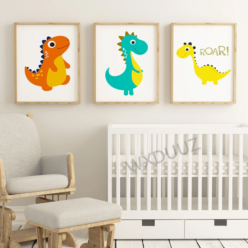 Мультяшный маленький динозавр, детская спальня, скандинавский стиль, картина для мальчика и девочки, художественный декор, домашний декор, холст, картина K504