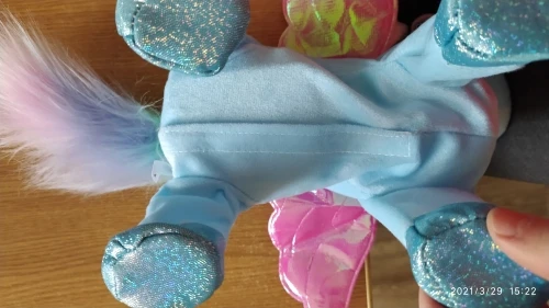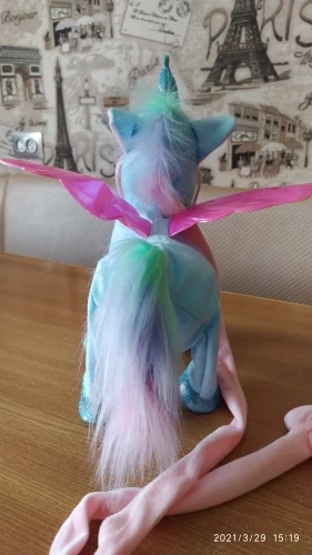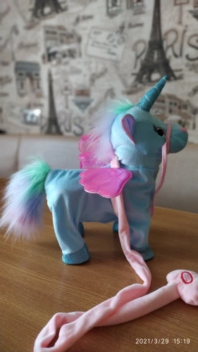 Хороший внешний вид, но сзади пришлось зашивать, поскольку ткань немного порвалась по шву. Требует 4 батарейки АА (покупаются отдельно). Мы взяли дешëвые, хватило на вечер. Звук нормальный, двигается единорог тоже хорошо, даже немного обходит препятствия (совсем капельку). Доставка очень быстрая. В целом заказом довольны, детям (8 лет, 1год 4 месяца) очень понравилось. Но расход батареек чудовищный.