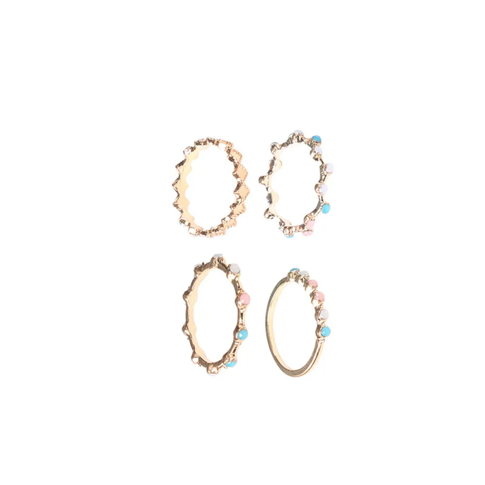 Богемные этнические тонкие кольца со стразами 4 шт.компл. минималис...