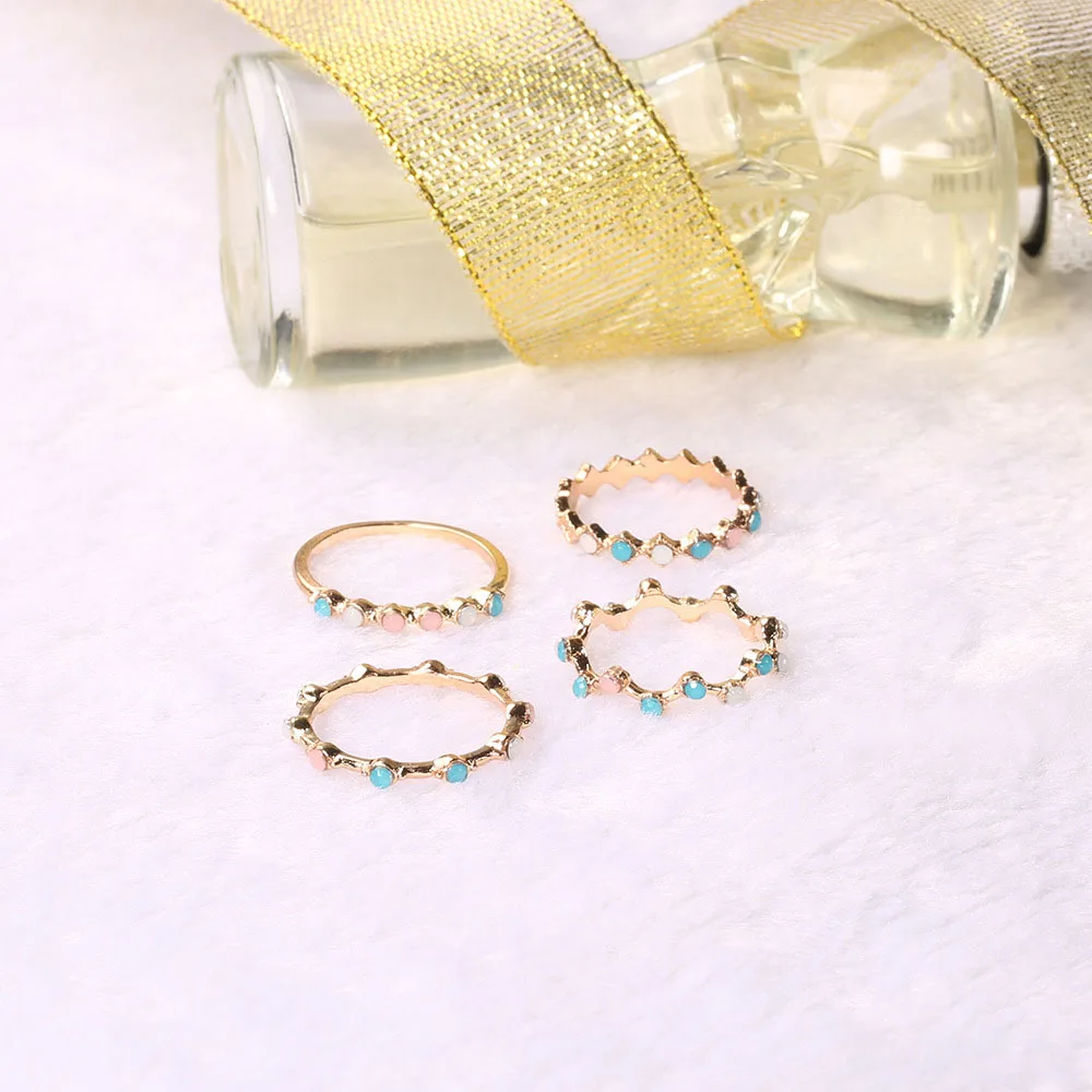 4 шт./компл. ретро цветной кристалл камень кольцо набор дамы цвет яркие цвета модные вечерние свадебные ювелирные изделия