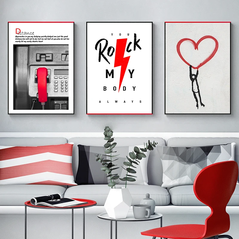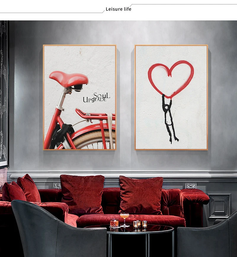 Красная Минималистичная картина с буквами в скандинавском стиле домашний декор холст картина настенное искусство абстрактные постеры и принты велосипед поезд для спальни