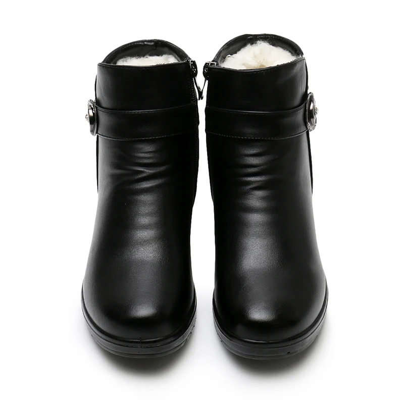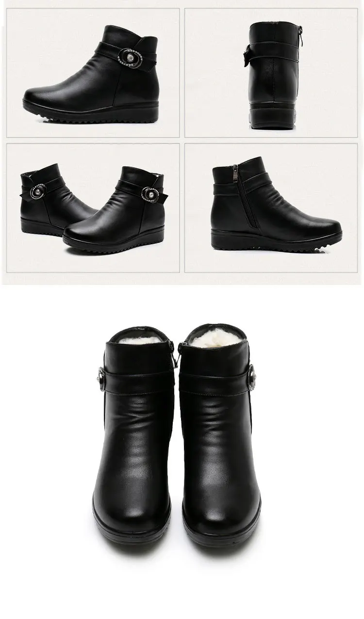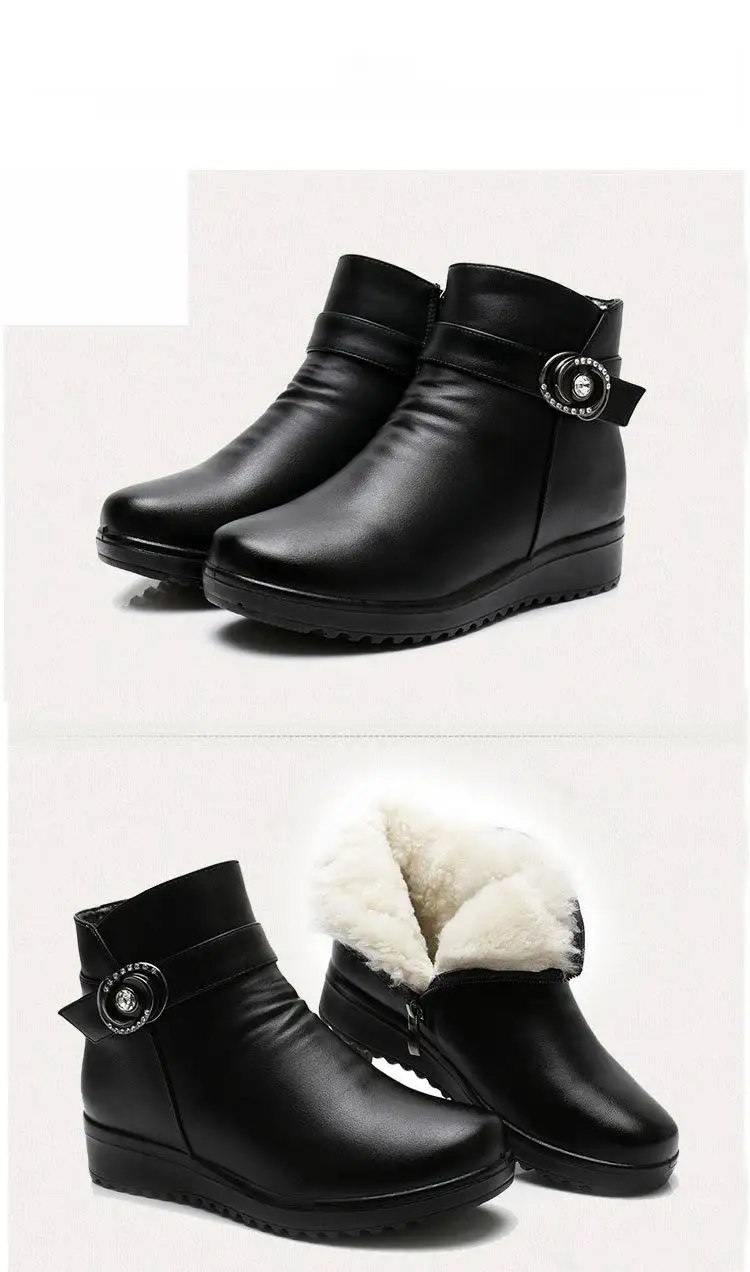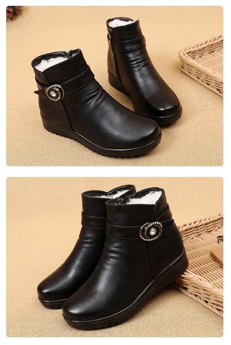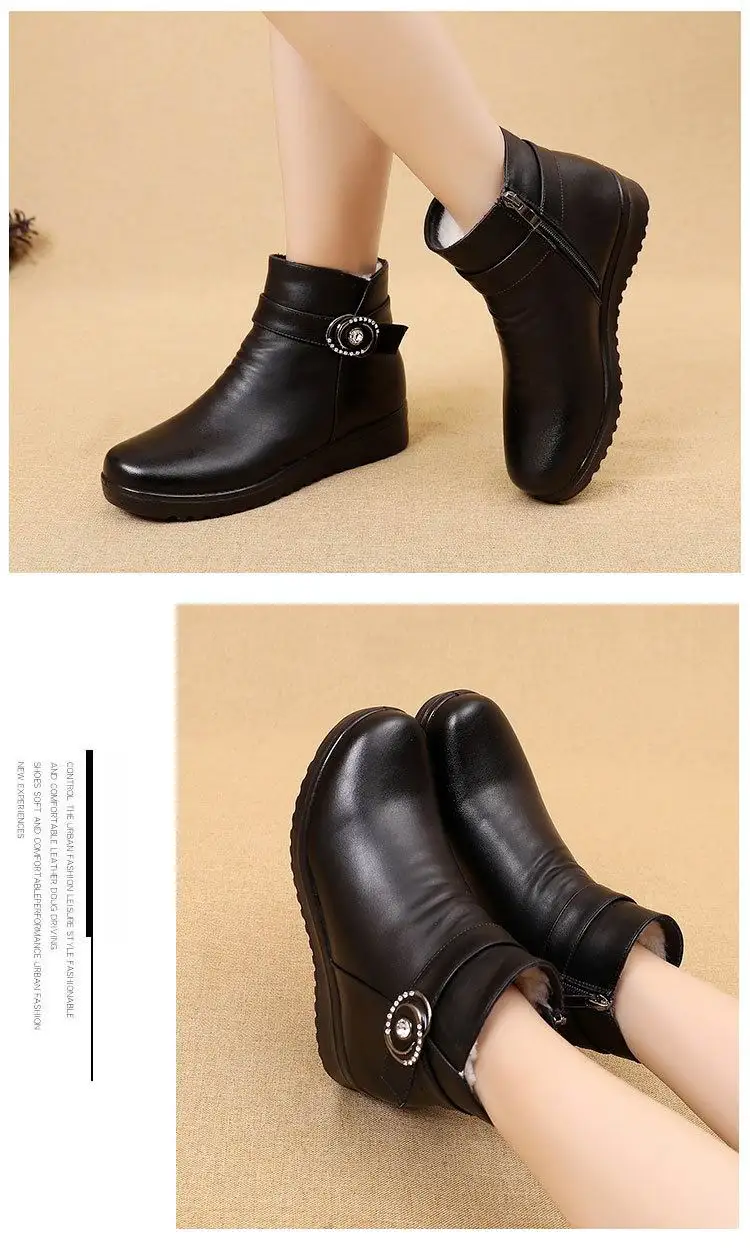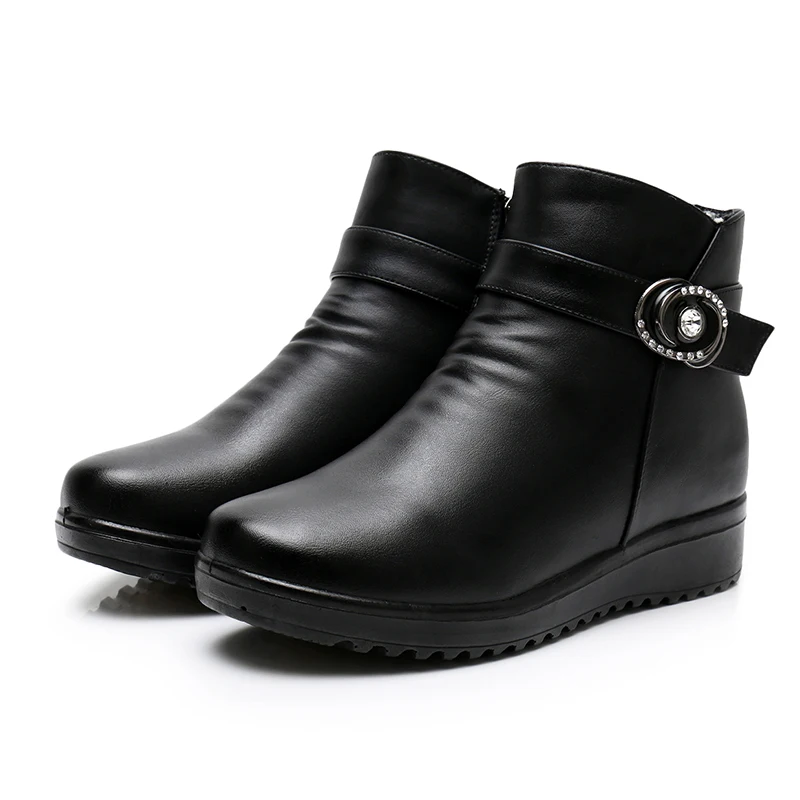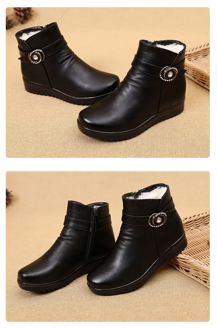 Женские кожаные ботильоны GKTINOO, теплые ботильоны на плоской нескользящей мягкой подошве, удобные женские сапоги для мам среднего возраста