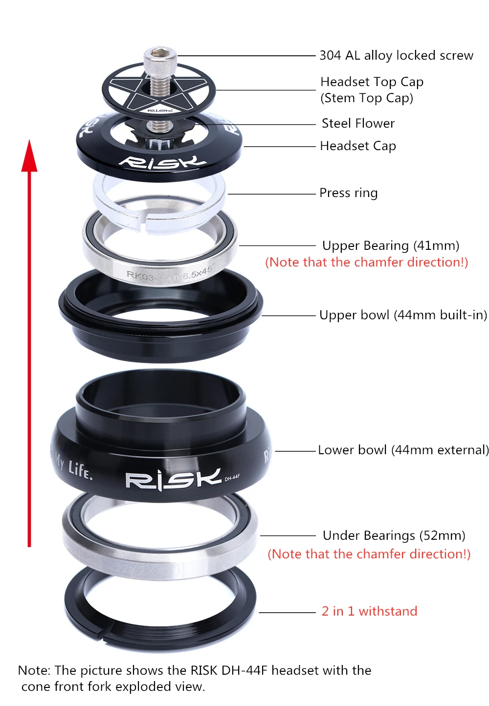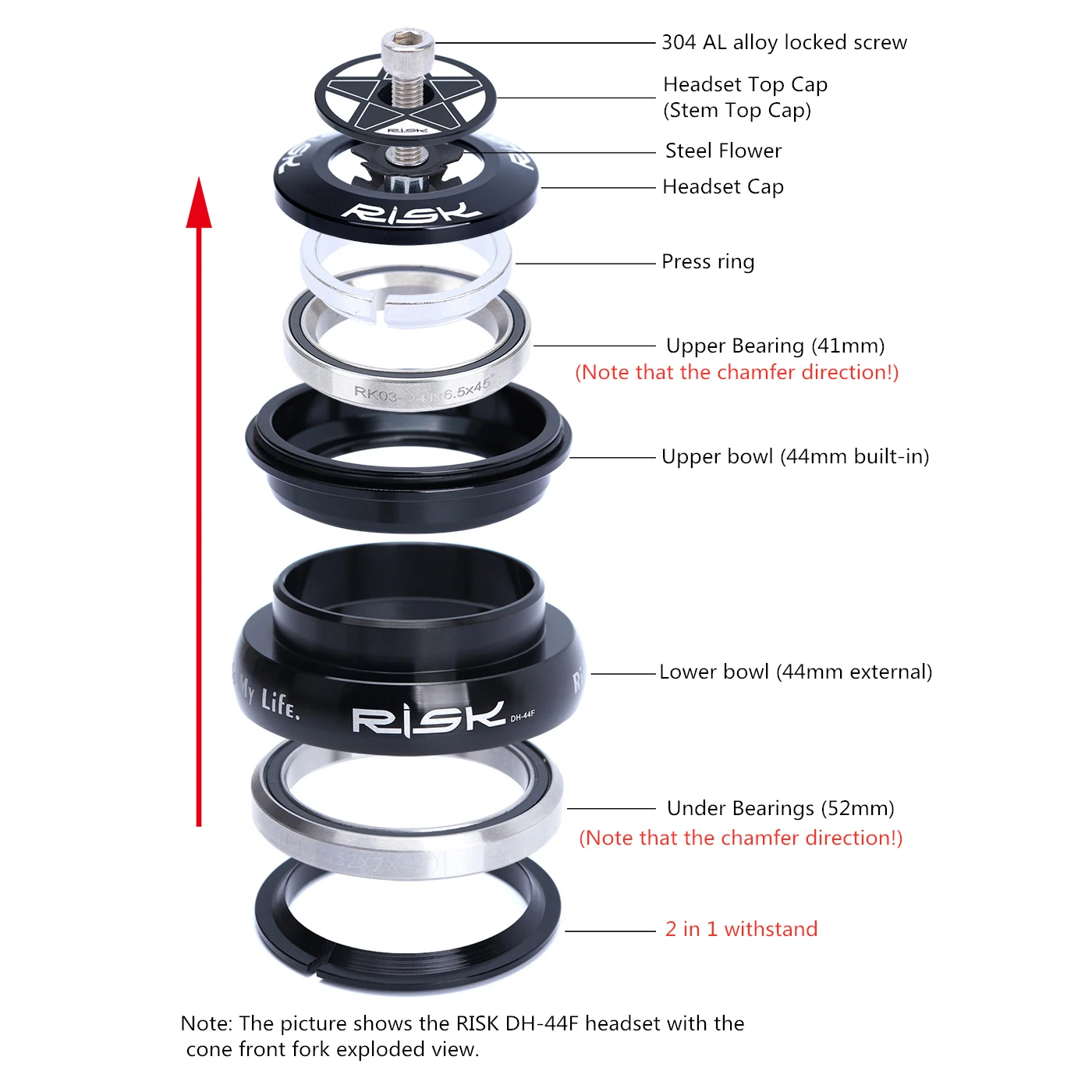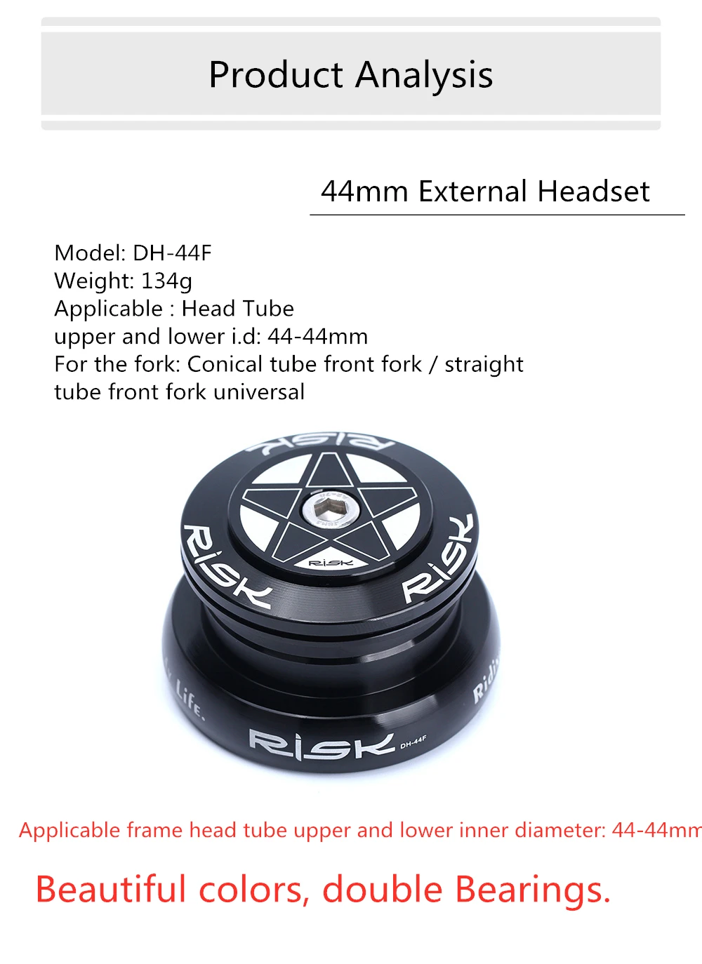 Рама для велосипеда, коническаяПрямая, 44 мм, 1 12 дюйма (28,6 мм), 1 12 дюйма, передняя вилка, двойной подшипник, Внешняя гарнитура