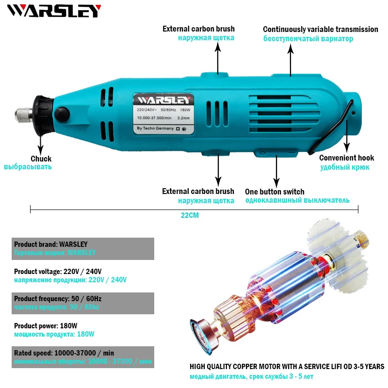 Гравер 180 Вт, Миниатюрная дрель, Dremel, гравировальная ручка, шли...