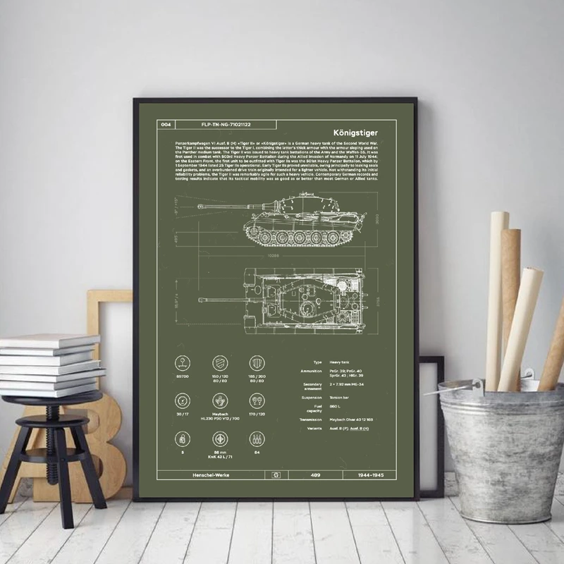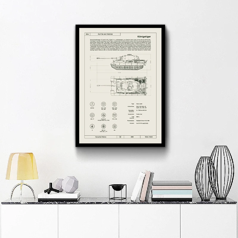 Panzer Tiger konigstigger, запатентованные военные постеры из Германии с принтом, Картина на холсте, Декор для дома