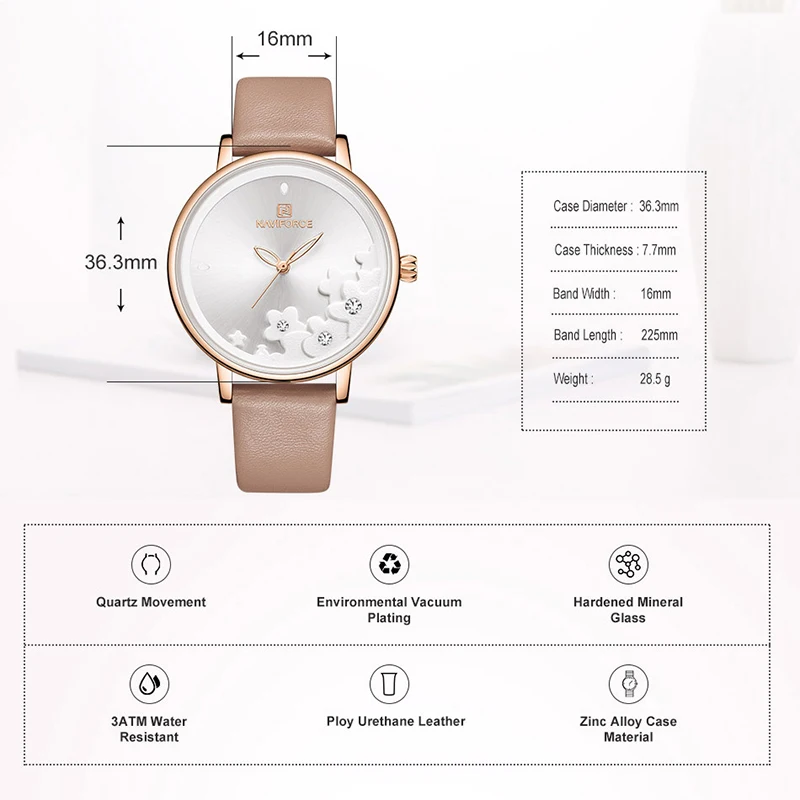 Артикул:NAVIFORCE роскошные женские часы из розового золота