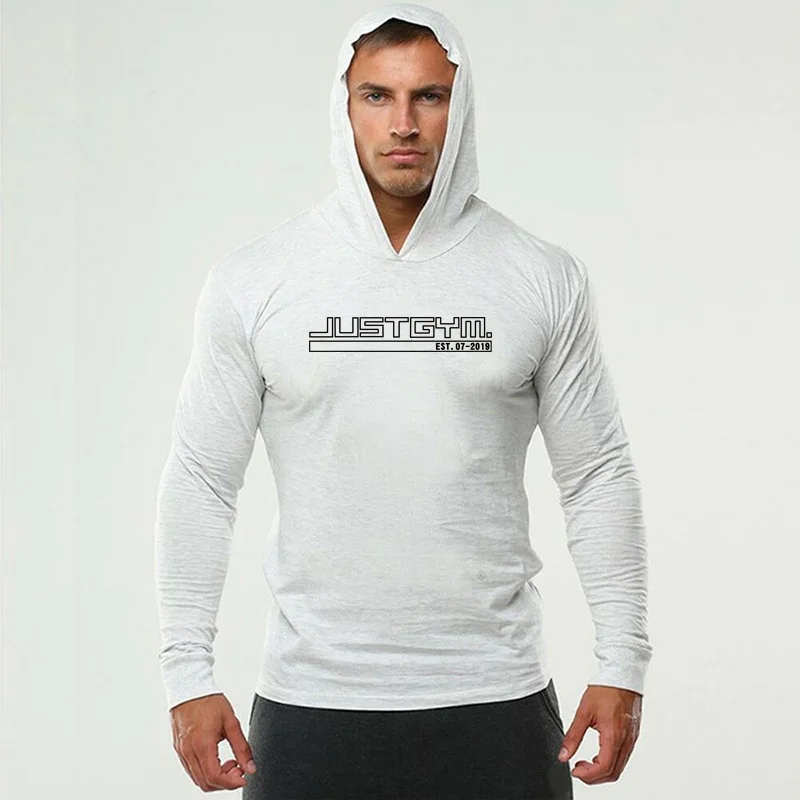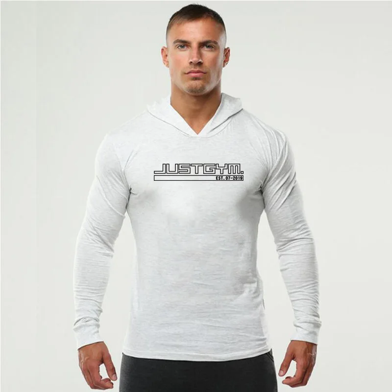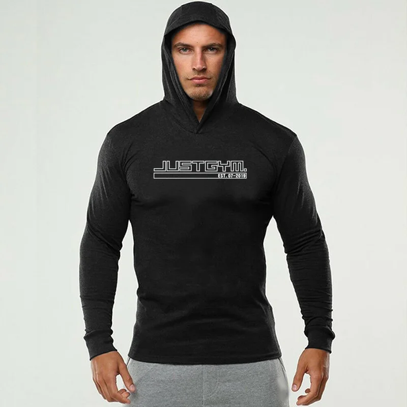 Футболка мужская с капюшоном и длинным рукавом, брендовая одежда для спортзала, хлопковая футболка для фитнеса, Толстовка для бодибилдинга