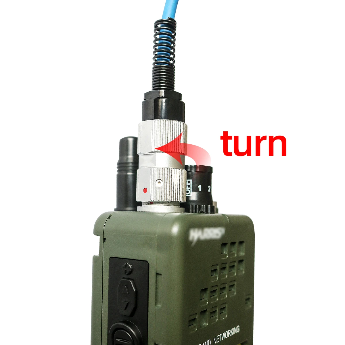 Соединительный кабель изготовлен из кевлового провода и TPE крышки, которая растягивается, сильный и антифриз, не легко быть состаренным и твердым.С крючком на спине, Ручной ptt можно повесить на тканевый комплект.Кабель может быть распространяется на 1,5 метра, встретите airsoft спортивные игроков требованиеКнопка сбоку, легко нажимать.Адаптированный уникальный дизайн-6 pin, он имеет более простой шаг установки и предназначен для PRC-152/PRC-148.Легко установить, прежде всего, выровнять 2 красные точки, затем нажмите и поверните, чтобы сделать его компактным с PRC-152 PRC-148.Цвет: черный